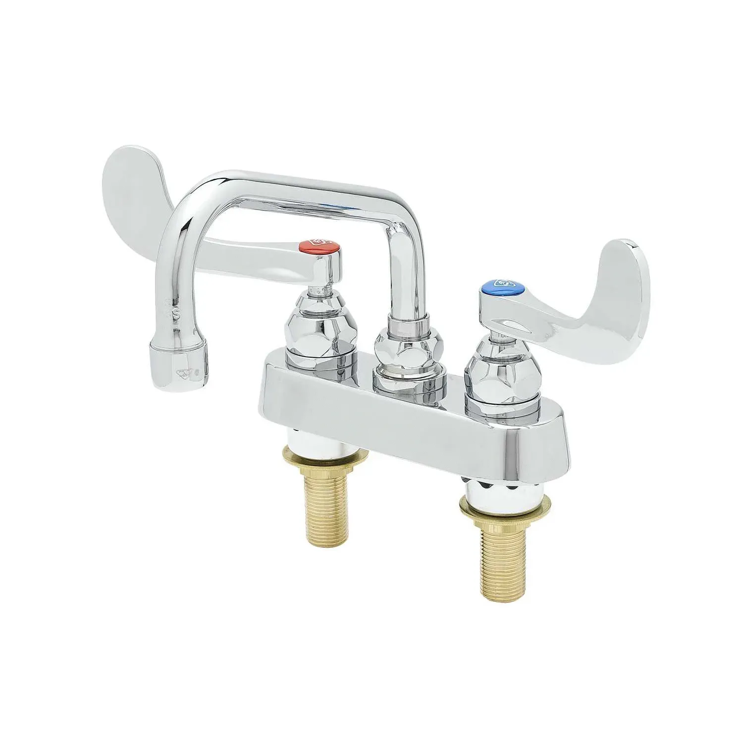 Upgrade Equipment Reliability with the T&S Brass B-1110-XS-WH4 Manual Faucet. Designed specifically for commercial restaurant use, this 4" deck mount workboard faucet is a reliable and efficient choice for any kitchen. The faucet features XS inlets and 4" wrist-action handles, providing easy control and maneuverability. With a 6" swing nozzle and a 2.2 GPM aerator, this faucet ensures a steady and powerful flow of water for all your cleaning and washing needs. The chrome plated brass body and compression cartridges with spring checks guarantee durability and longevity, even in high-volume restaurant environments. Certified to meet ASME A112.18.1/CSA B125.1, NSF 61-Section 9, and NSF 372 standards, this faucet is not only reliable but also safe for use in a commercial kitchen. Upgrade your restaurant's equipment with the T&S Brass B-1110-XS-WH4 Manual Faucet and experience enhanced performance and durability.