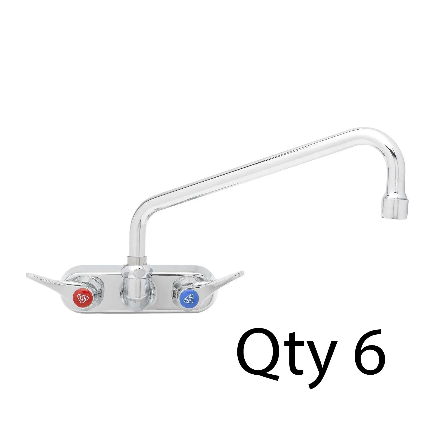 Ensure smooth operation with the T&S Brass B-1117-M Manual Faucets. Designed specifically for commercial restaurant use, this workboard faucet is wall-mounted with 4" centers, providing a convenient and space-saving solution for your kitchen. The 10" swing nozzle allows for easy maneuverability, ensuring efficient cleaning and filling tasks. With lever handles, this faucet offers precise control over water flow and temperature, enhancing the overall user experience. Whether you're washing dishes, filling pots, or cleaning countertops, these faucets deliver reliable performance and durability. Upgrade your restaurant's kitchen with the T&S Brass B-1117-M Manual Faucets and experience the difference in efficiency and convenience.