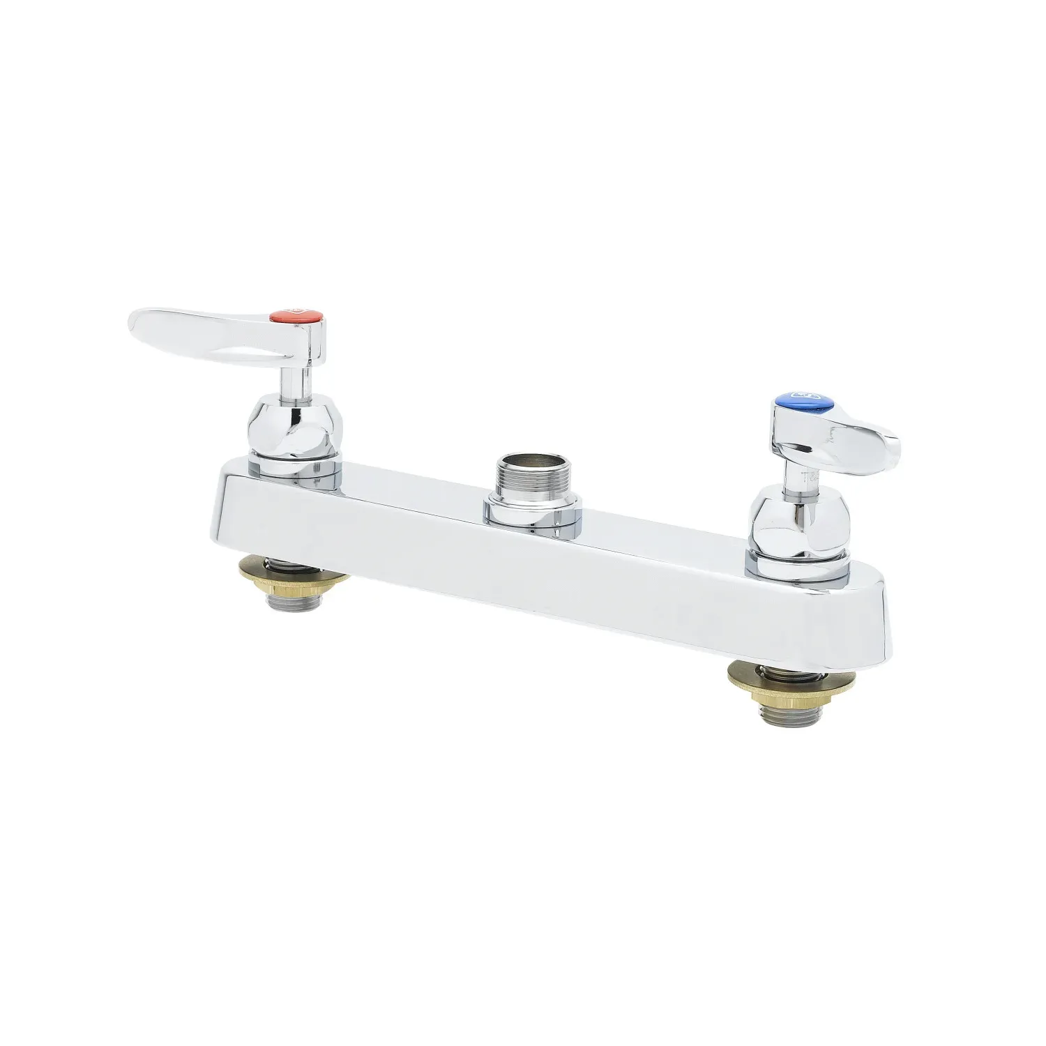 Facilitate Equipment Use with the T&S Brass B-1120-CR-LN Manual Faucet. This 8" deck mount workboard faucet is designed specifically for commercial restaurant use, providing convenience and efficiency in any kitchen setting. The chrome plated brass body ensures durability and longevity, while the swivel outlet allows for easy maneuverability. With lever handles and ceramic cartridges with check valves, this faucet offers precise control over water flow and temperature. It is certified to meet ASME A112.18.1/CSA B125.1, NSF 61-Section 9, and NSF 372 standards, ensuring its safety and compliance. The 1/2" NPT male inlets and chrome plated escutcheon make installation a breeze. Whether you're washing dishes, filling pots, or cleaning work surfaces, the T&S Brass B-1120-CR-LN Manual Faucet is the perfect choice for any commercial restaurant.