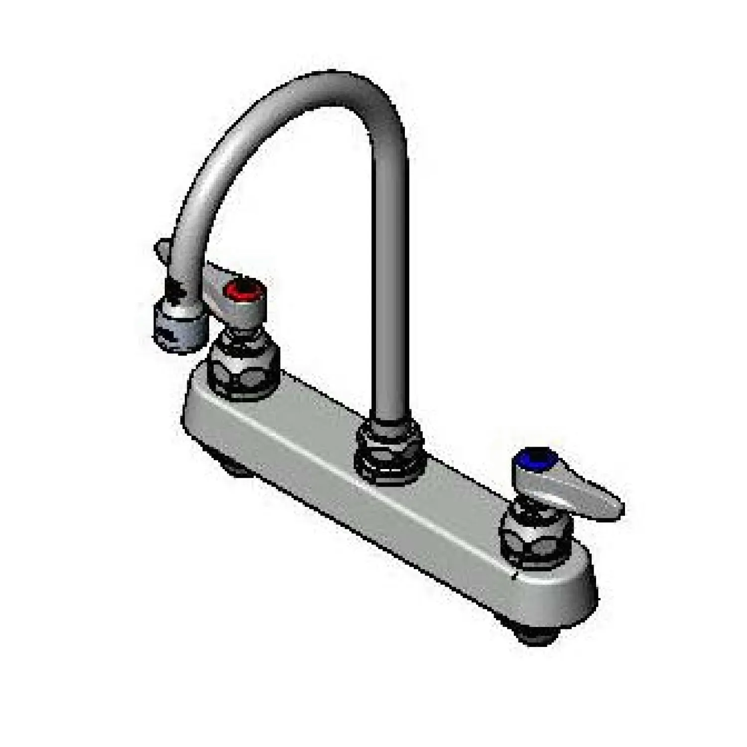 Improve Overall Functionality with the T&S Brass B-1142-VF05 Manual Faucet. Designed specifically for commercial restaurant use, this 8" deck mount faucet is a game-changer in the kitchen. Its chrome plated brass body ensures durability and longevity, while the 5 3/4" swivel gooseneck with a 0.5 GPM vandal resistant non-aerated spray device provides flexibility and precision. The compression cartridges with spring checks guarantee smooth operation, and the lever handles offer easy control of water flow and temperature. With 1/2" NPT male inlets and a chrome plated escutcheon, this faucet is not only functional but also aesthetically pleasing. Certified to ASME A112.18.1/CSA B125.1, NSF 61-Section 9, and NSF 372, it meets the highest industry standards. Additionally, it complies with ADA ANSI/ICC A117.1 requirements, ensuring accessibility for all users. Upgrade your restaurant's kitchen with the T&S Brass B-1142-VF05 Manual Faucet and experience enhanced efficiency and reliability.