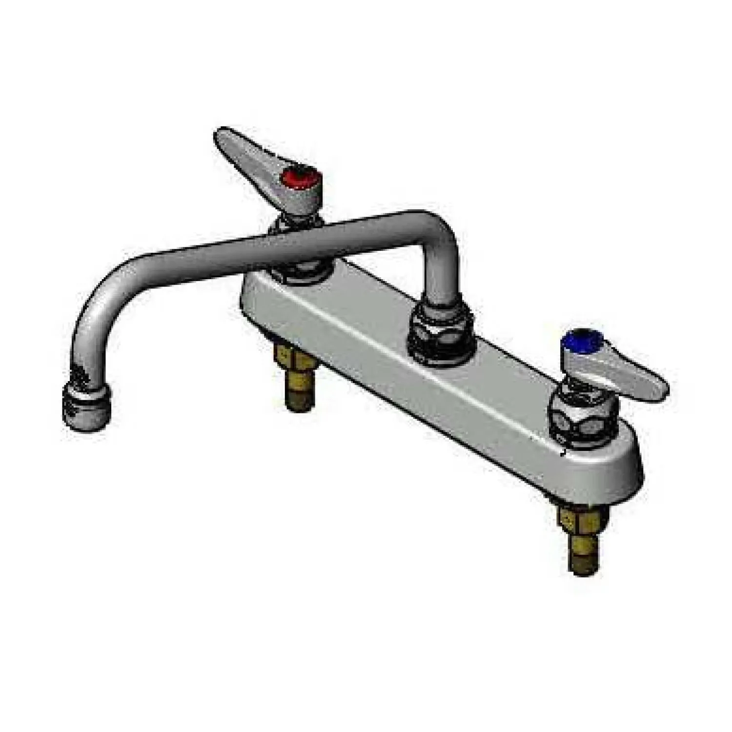 Ensure Consistent Performance with the T&S Brass B-1164 Manual Faucet. Designed specifically for commercial restaurant use, this 8" deck mount workboard faucet is a reliable choice for any busy kitchen. With 1/2" NPT shanks and a 10" swing nozzle, it provides easy access to water wherever it's needed. The faucet features a chrome plated brass body for durability and a 2.2 GPM aerator for efficient water flow. It also includes compression cartridges with spring checks and lever handles for smooth operation. The package comes with two 36" flexible supply hoses and 1/2" NPT supply stop female inlets for easy installation. Certified to ASME A112.18.1/CSA B125.1, NSF 61-Section 9, and NSF 372, this faucet meets all necessary standards for commercial use. Trust T&S Brass for a high-quality, long-lasting faucet that will keep your restaurant running smoothly.