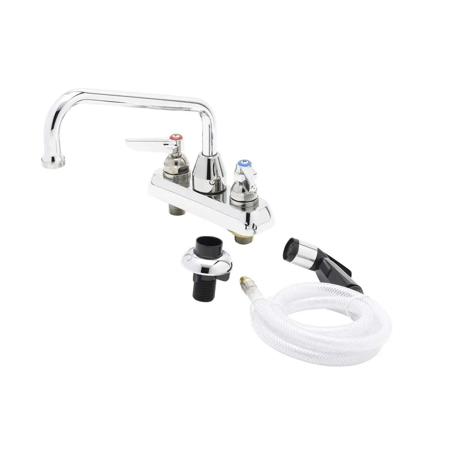 Maximize Equipment Performance with the T&S Brass B-1171-07 Manual Faucet. This 4" deck mount mixing faucet is designed for commercial restaurant use, ensuring durability and reliability. The chrome plated brass body and 8" swing nozzle with a 2.2 GPM aerator provide a sleek and efficient solution for your kitchen needs. The compression cartridges with spring checks and lever handles offer easy operation and control. With 1/2" NPT male inlets, this faucet is compatible with standard plumbing systems. The chrome plated escutcheon and sidespray with a 7 ft. hose and hose guide add convenience and versatility to your workspace. Certified to ASME A112.18.1/CSA B125.1, NSF 61-Section 9, and NSF 372, this faucet meets industry standards for safety and quality. Additionally, it meets ADA ANSI/ICC A117.1 requirements, ensuring accessibility for all users. Upgrade your restaurant's equipment with the T&S Brass B-1171-07 Manual Faucet for enhanced performance and efficiency.