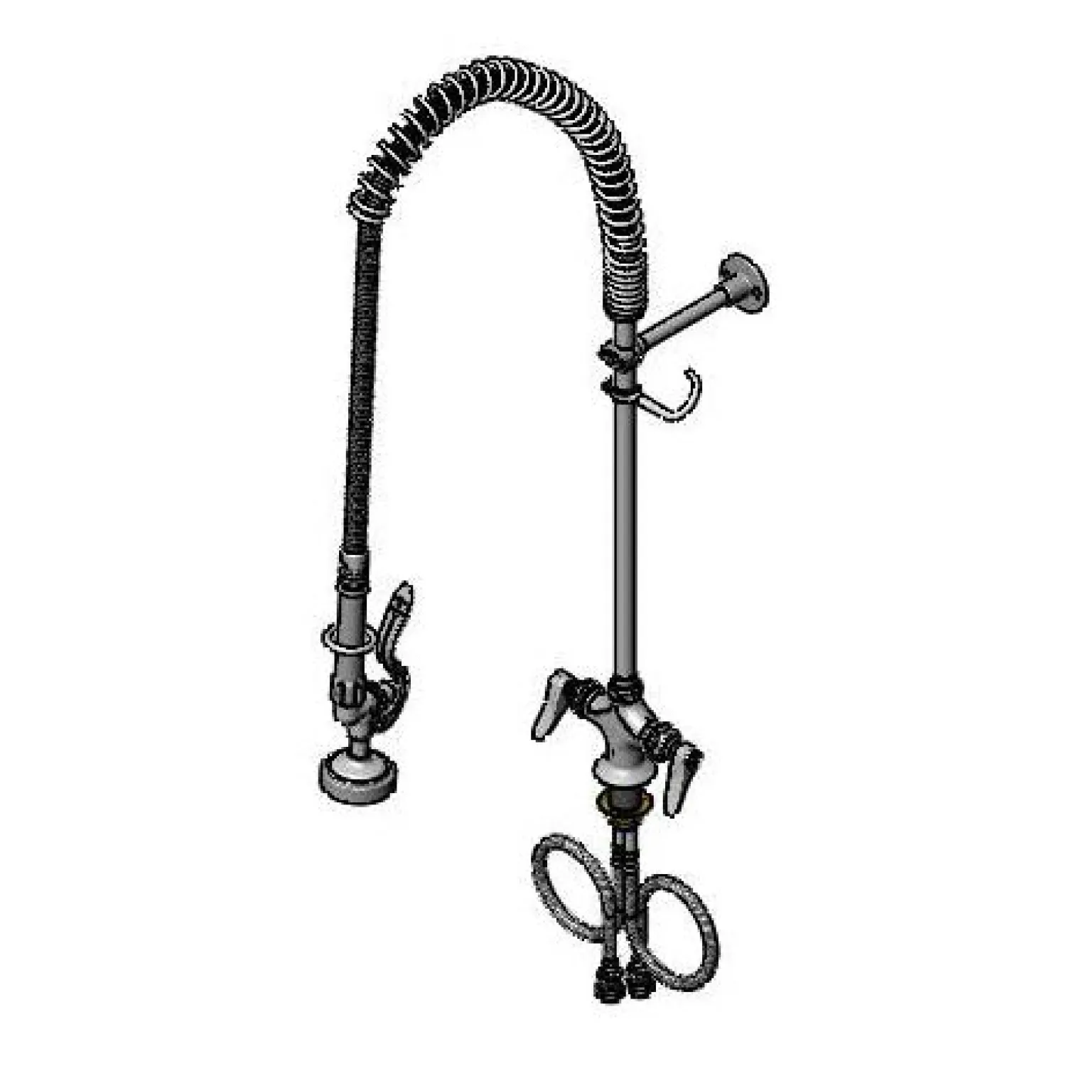 Facilitate Equipment Use with T&S Brass, B-2244-B, Pre-Rinse Units. This pre-rinse unit from T&S Brass is designed to enhance efficiency and convenience in commercial restaurant settings. With its spring action and single hole base, this unit offers easy maneuverability and installation. The polished chrome plated brass body ensures durability and a sleek appearance. The 18" riser and 44" flexible stainless steel hose with a heat-resistant handle provide ample reach and flexibility for thorough rinsing. The 1.15 GPM spray valve, compression cartridges with spring checks, and lever handles offer precise control and reliable performance. Additionally, the 18" flexible stainless steel supply hoses with 1/2" NPSM / 5/8" compression connections ensure a secure and leak-free connection. The unit is certified to ASME A112.18.1/CSA B125.1, NSF 61-Section 9, and NSF 372 standards, guaranteeing its quality and compliance. Upgrade your restaurant's dishwashing process with the T&S Brass, B-2244-B, Pre-Rinse Units.