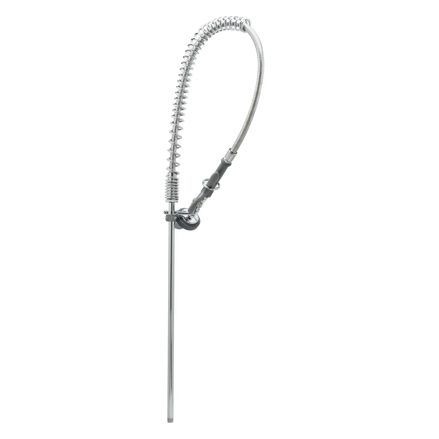 Ensure Equipment Consistency with the T&S Brass, B-2250-B, Pre-Rinse Faucet Assembly. This commercial-grade pre-rinse assembly is designed to meet the rigorous demands of a busy restaurant kitchen. With a 44" stainless steel hose and a self-closing squeeze valve, this assembly provides flexibility and convenience for efficient dishwashing and food preparation. The heat-resistant gray handle and hold down ring ensure durability and ease of use, while the 1.15 GPM spray valve delivers a powerful spray to effectively rinse away food debris. The wall bracket allows for easy installation and keeps the assembly securely in place. Whether you're washing dishes, rinsing vegetables, or cleaning kitchen equipment, the T&S Brass Pre-Rinse Faucet Assembly is a reliable and essential tool for any commercial restaurant. Trust in T&S Brass for quality and performance in your kitchen.