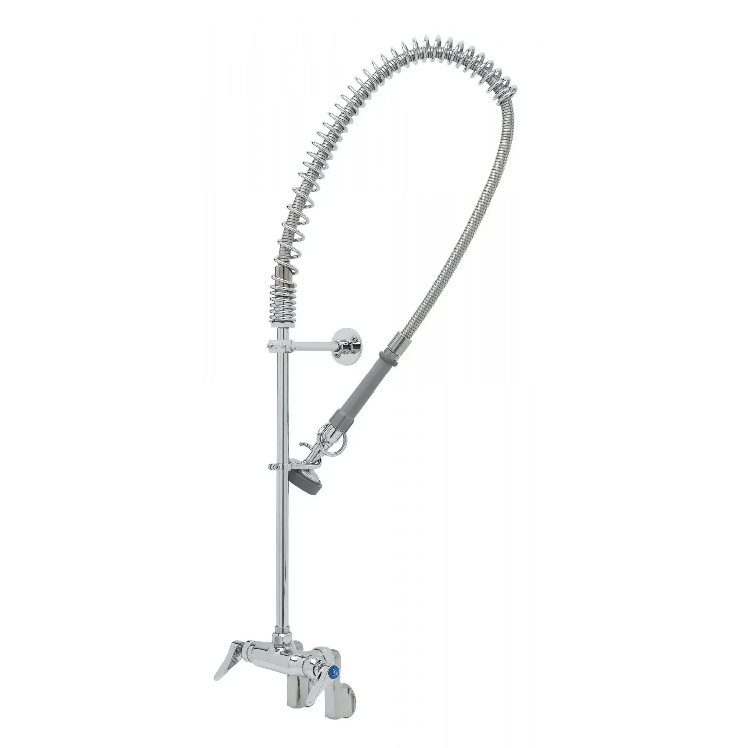 Improve system efficiency with the T&S Brass, B-2261-B Pre-Rinse Faucet Assembly. Designed for commercial restaurant use, this pre-rinse faucet assembly from T&S Brass is a must-have for any busy kitchen. With its spring action and adjustable inlet centers, this wall-mounted faucet offers flexibility and convenience. The polished chrome plated brass body ensures durability and a sleek appearance, while the easy-install 18" riser and 44" flexible stainless steel hose with a heat-resistant gray handle make it easy to reach every corner of your sink. The included spray valve and wall bracket add to the functionality of this assembly, allowing for efficient rinsing and easy storage. Whether you're washing dishes or prepping ingredients, the T&S Brass, B-2261-B Pre-Rinse Faucet Assembly is the perfect addition to your restaurant kitchen.