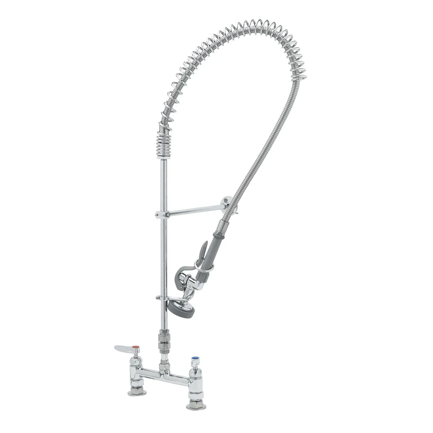 Maintain Equipment Reliability with the T&S Brass, B-2277-CR, Pre-Rinse Faucet Assembly. This deck mount faucet is designed to meet the demanding needs of commercial restaurants. With its polished chrome plated brass body, it not only adds a touch of elegance to your kitchen but also ensures durability and longevity. The easy-install continuous pressure vacuum breaker prevents backflow, ensuring the safety of your water supply. The 18" riser provides ample height for easy cleaning of large pots and pans. Whether you're running a busy restaurant or a bustling cafe, this pre-rinse faucet assembly is a must-have for maintaining equipment reliability and ensuring efficient kitchen operations. Trust T&S Brass for all your commercial restaurant needs.