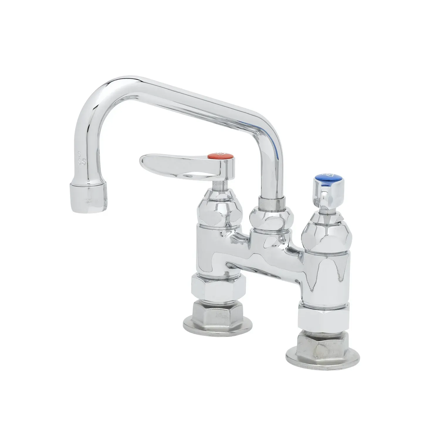 Enhance System Durability with the T&S Brass B-2283 Pantry Faucet. Designed specifically for commercial restaurant use, this deck mount faucet is a reliable and durable choice for any kitchen. With a polished chrome plated brass body, it not only adds a touch of elegance to your space but also ensures long-lasting performance. The 4" centers and 6" swing nozzle provide flexibility and convenience, allowing for easy maneuverability and efficient washing. The 1/2" NPT male inlets ensure a secure and leak-free connection, minimizing maintenance and downtime. This pantry faucet includes a lock washer to convert it to a rigid faucet, giving you the option to customize it to your specific needs. Trust T&S Brass, a reputable vendor known for their high-quality products, to enhance the durability and functionality of your restaurant's system.