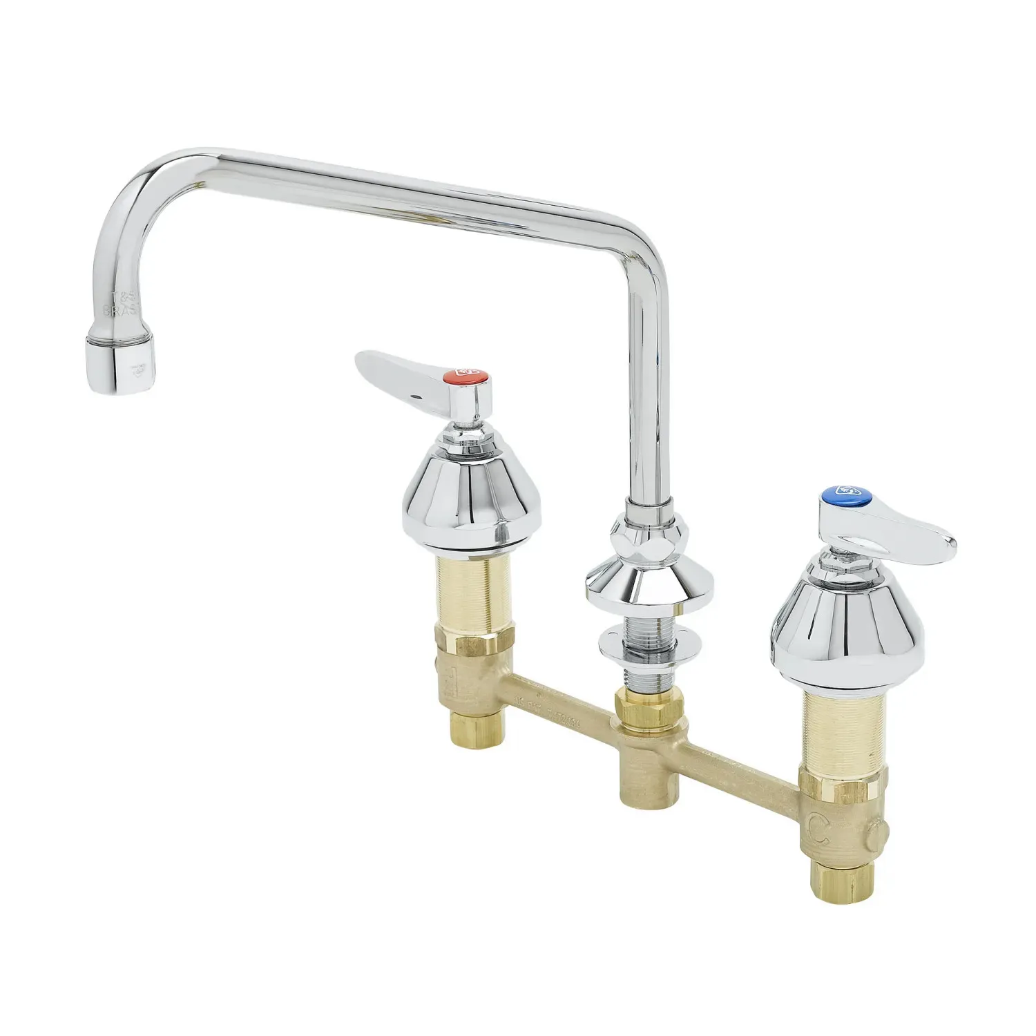 Manage Equipment Accessories with T&S Brass, B-2347-09, Manual Faucets. This 8" Concealed Widespread Faucet is a must-have for any commercial restaurant. With its 9-1/2" Swivel Nozzle w/ Aerator, it provides a powerful and efficient water flow, perfect for washing dishes and cleaning countertops. The Eternas w/ Lever Handles offer easy control and precision, ensuring that you can adjust the water temperature and flow with ease. The chrome plated escutcheons add a touch of elegance to any kitchen decor. Certified to ASME A112.18.1/CSA B125.1, NSF 61-Section 9, and NSF 372, this faucet meets all the necessary safety and quality standards. It also meets ADA ANSI/ICC A117.1 requirements, making it accessible for all users. With 1/2" NPT male inlets and coupling nuts, installation is a breeze. Upgrade your restaurant's kitchen with the T&S Brass B-2347-09 Manual Faucet and experience the convenience and reliability it offers.