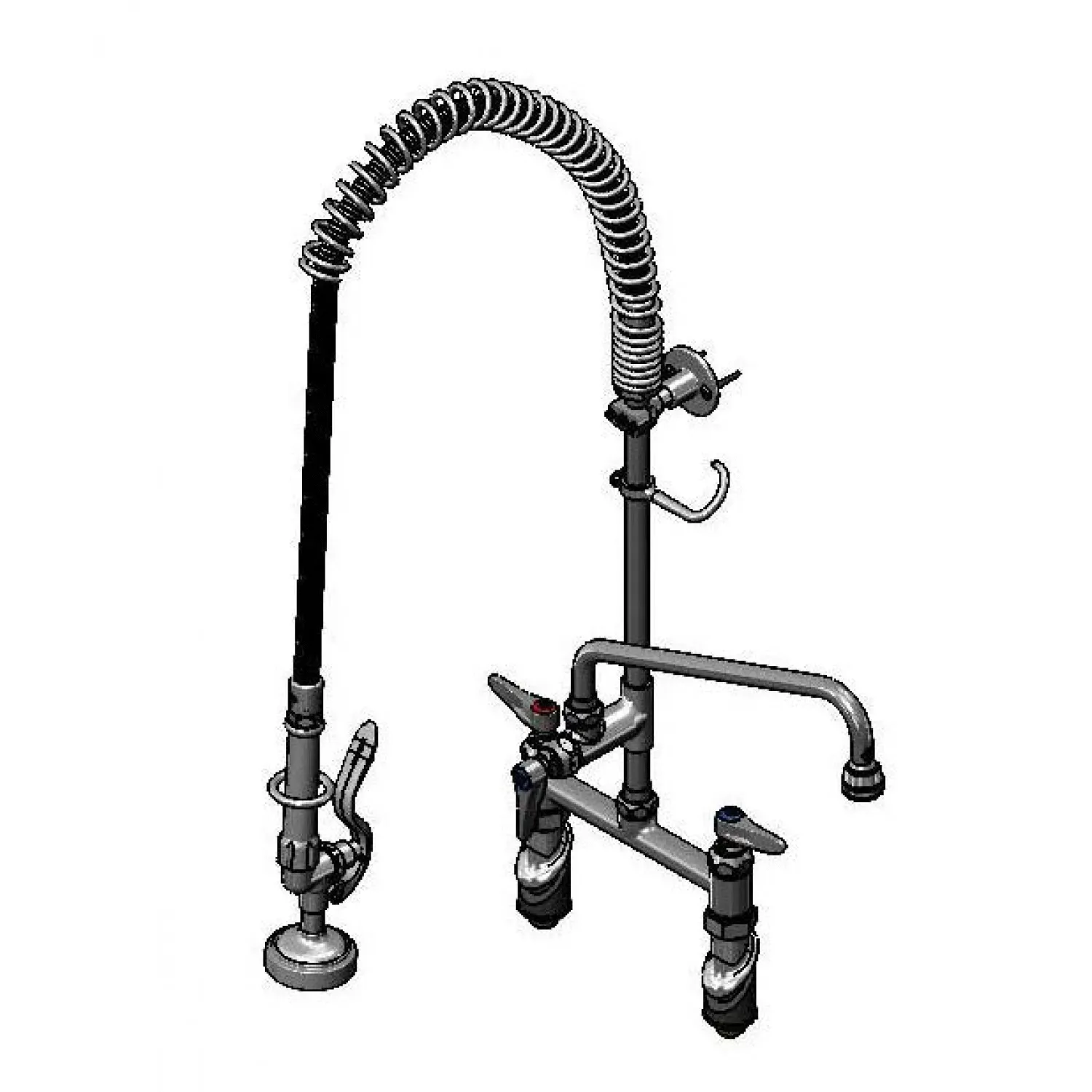 Maintain Equipment Reliability with T&S Brass, B-2430-B145X44H, Pre-Rinse Units. This 8" deck mount mixing faucet with a polished chrome plated brass body is a must-have for any commercial restaurant. Its easy-install add-on faucet also features a polished chrome plated brass body, ensuring durability and longevity. The 12 1/16" swing nozzle with a 2.2 GPM rosespray outlet provides versatility and efficiency in washing dishes and cleaning surfaces. With its Series 1 design, this pre-rinse unit from T&S Brass guarantees top-notch performance and reliability. Whether you're running a bustling kitchen or a small cafe, this pre-rinse unit is designed to withstand the demands of a commercial restaurant setting. Upgrade your restaurant's equipment with the T&S Brass, B-2430-B145X44H, Pre-Rinse Units for enhanced efficiency and peace of mind.