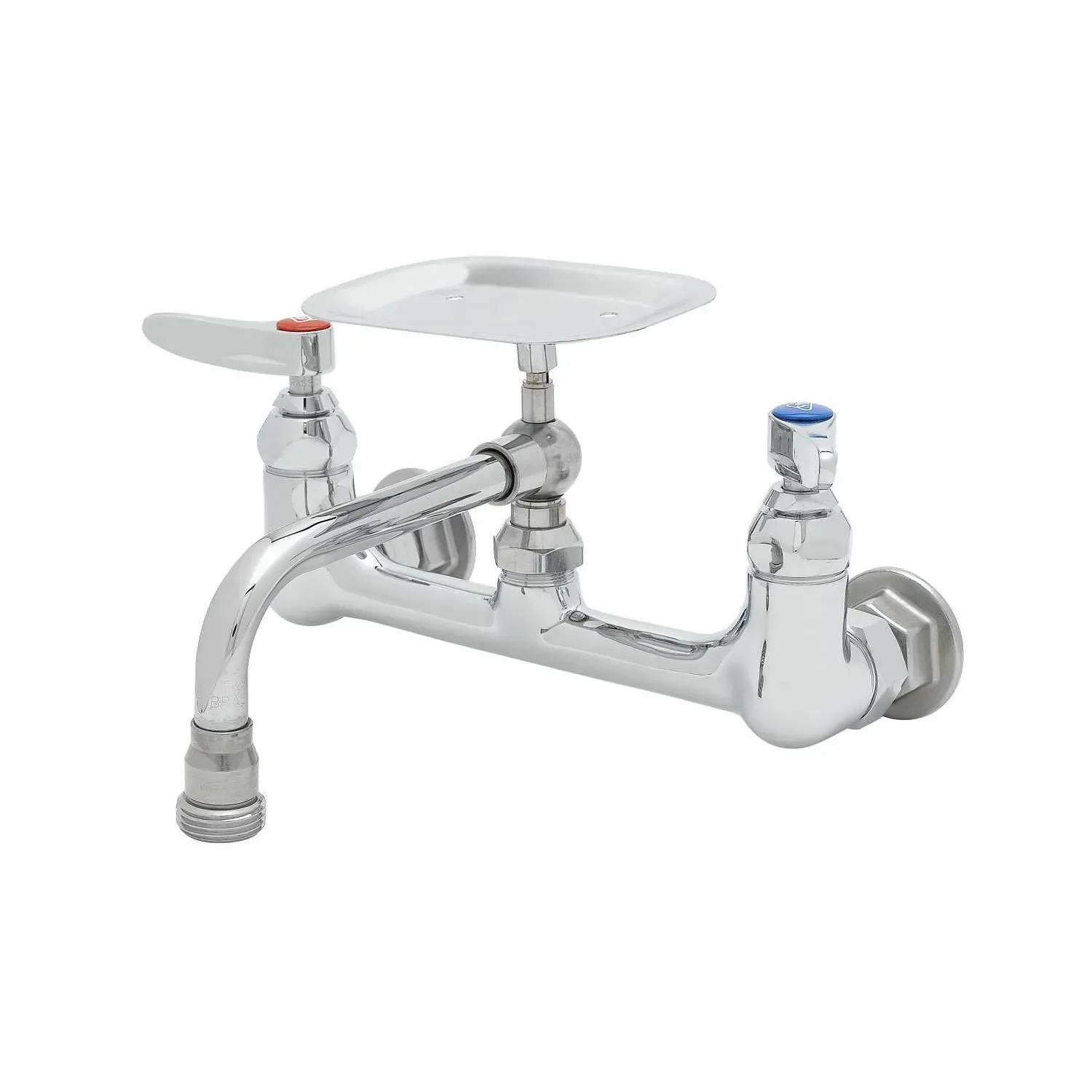 Enhance Equipment Efficiency with T&S Brass, B-2489, Pantry Faucets. This 8" wall mount mixing faucet is designed to optimize performance and durability in commercial restaurant settings. The polished chrome plated brass body not only adds a sleek and professional look to your pantry area but also ensures long-lasting reliability. The 6" soap dish nozzle with a garden hose outlet provides convenience and versatility, allowing for easy cleaning and maintenance tasks. With the Series 2 design, this faucet offers improved water flow control, reducing waste and maximizing efficiency. The lock washer provided ensures a secure and rigid application, preventing any leaks or loose fittings. Whether you're washing dishes, filling containers, or cleaning produce, the T&S Brass B-2489 Pantry Faucet is the perfect addition to any commercial kitchen, enhancing productivity and ensuring a smooth workflow.