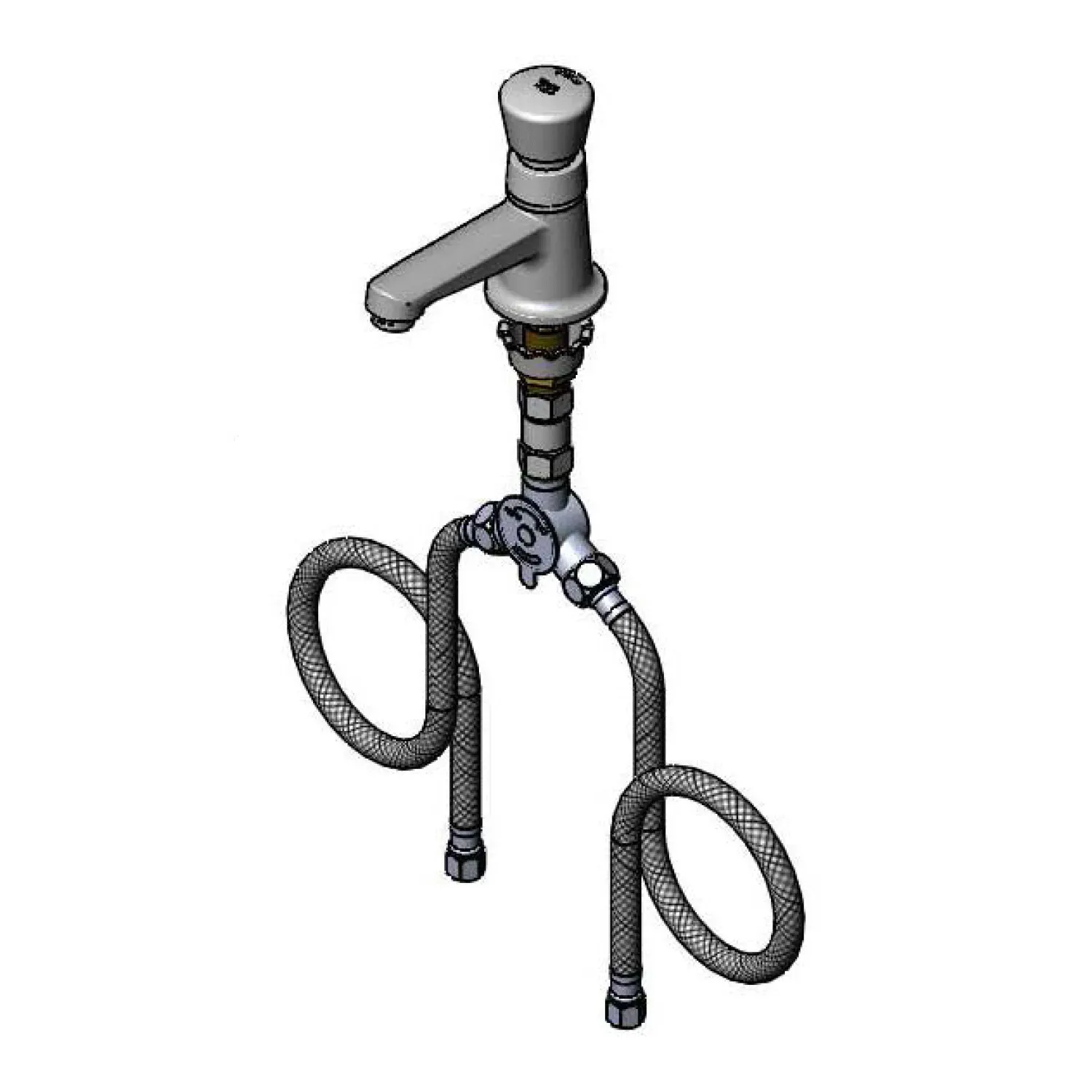 Maintain System Performance with the T&S Brass B-2490-VF05 Manual Faucet. Designed specifically for commercial restaurant use, this basin faucet ensures reliable and efficient operation. With its push-button metering feature, you can easily control water flow, promoting water conservation and reducing costs. The vandal-resistant non-aerated outlet delivers a steady 0.5 GPM flow, perfect for filling basins and washing dishes. The polished chrome plated brass body not only adds a sleek and professional look to your restaurant's sink area but also ensures durability and longevity. This deck-mounted faucet comes with a metering cartridge and a blank push button cap for easy maintenance. The mechanical mixing valve with check valves and flexible stainless steel supply hoses provide added convenience and reliability. Certified to meet industry standards, including ASME A112.18.1/CSA B125.1 and NSF 61-Section 9, this T&S Brass faucet is a must-have for any commercial restaurant looking to maintain system performance and efficiency.