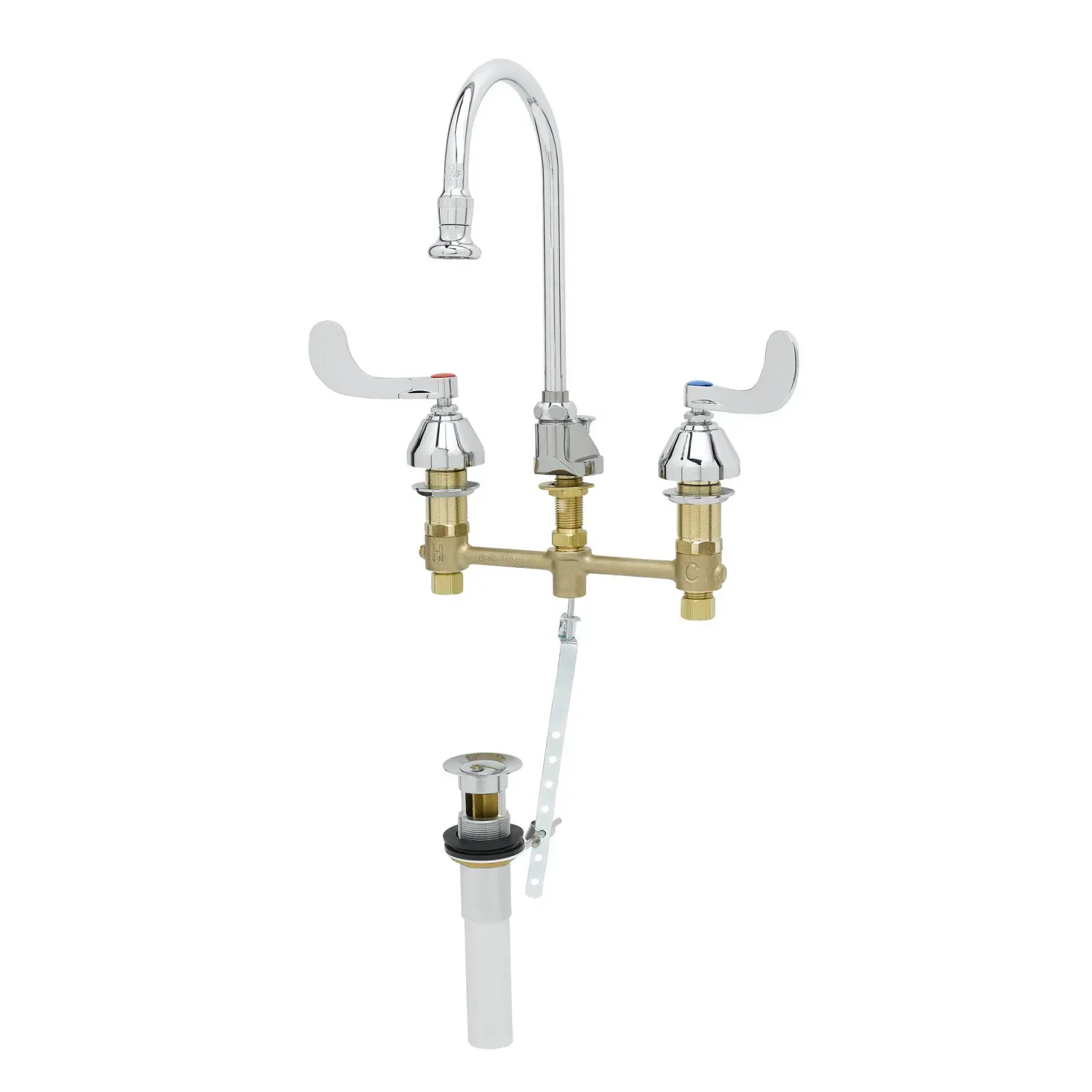 Optimize Equipment Performance with T&S Brass, B-2868-04, Manual Faucets. This medical faucet is designed to enhance efficiency and functionality in commercial restaurant settings. With its concealed body and 8" center-to-center spacing, this faucet offers a sleek and seamless appearance while ensuring easy installation. The swivel/rigid gooseneck with rosespray provides flexibility and precision, allowing for precise water flow control. The wrist handles offer convenient operation, promoting hygiene and reducing the risk of cross-contamination. Additionally, the pop-up feature adds convenience by allowing for easy drainage. T&S Brass, a trusted vendor in the industry, ensures the highest quality and durability of this faucet. Whether it's for food preparation, dishwashing, or general cleaning, this manual faucet is a reliable choice for any commercial restaurant. Upgrade your establishment with T&S Brass, B-2868-04, and experience improved performance and efficiency.