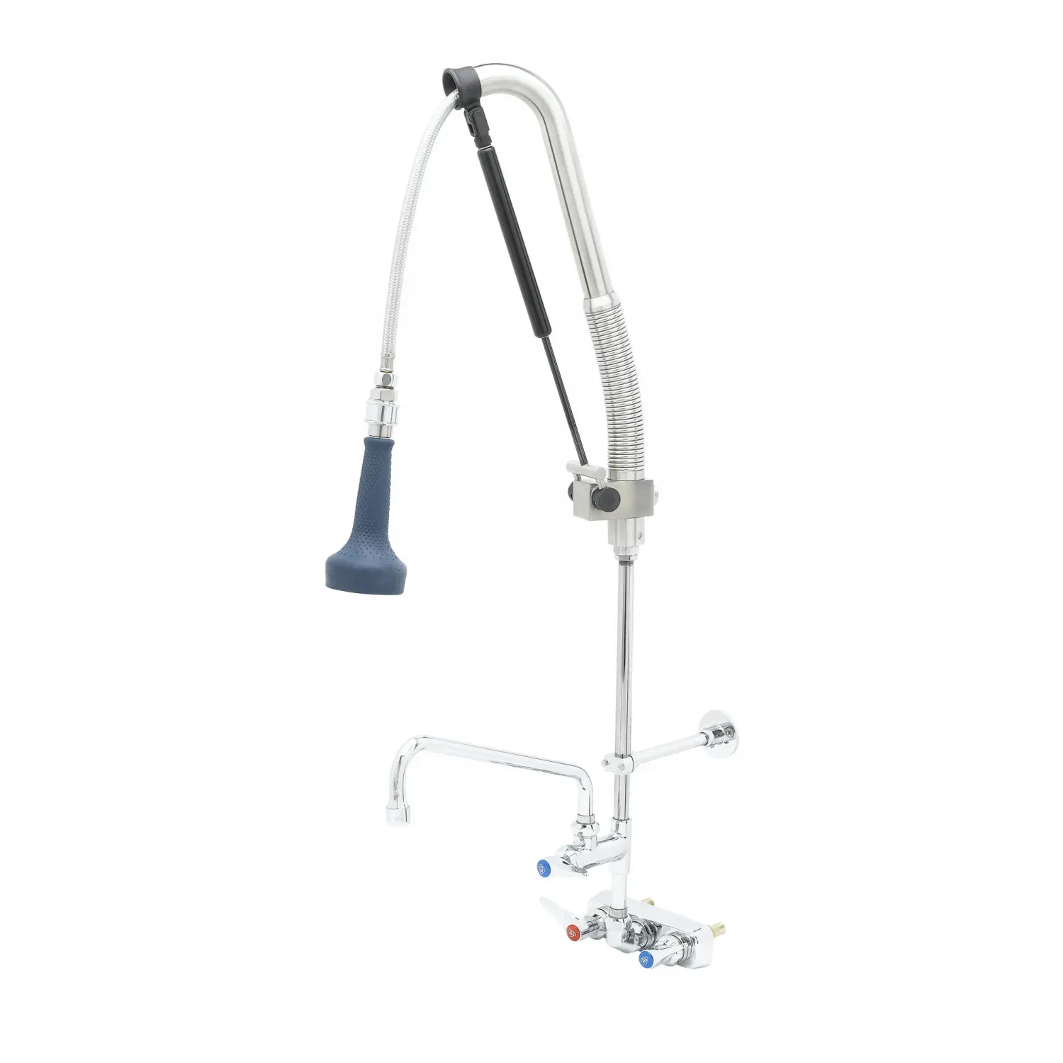 Maximize Equipment Performance with the T&S Brass B-5115-12-CRB8P Pre-Rinse Faucet Assembly. Designed specifically for commercial restaurant use, this high-quality faucet assembly is a must-have for any professional kitchen. With its 12" swing nozzle and stream regulator outlet, this faucet allows for precise control and efficient cleaning. The lever handles and cerama cartridges ensure smooth operation and long-lasting durability. The polished chrome plated brass body adds a touch of elegance to any kitchen decor. Easy to install, this faucet assembly comes with a wall bracket for added stability. Whether you're rinsing dishes, washing produce, or cleaning countertops, the T&S Brass B-5115-12-CRB8P Pre-Rinse Faucet Assembly is the perfect choice. Trust in T&S Brass, a reputable vendor known for their reliable and high-performance products. Upgrade your restaurant's equipment today and experience the difference.