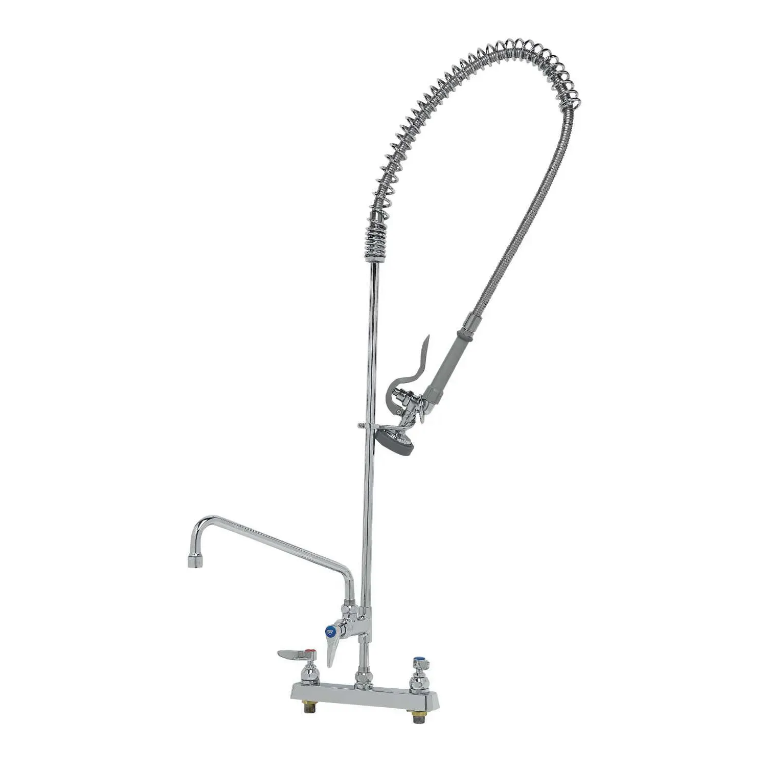 Enhance System Reliability with the T&S Brass B-5120-12-B Pre-Rinse Faucet Assembly. Designed specifically for commercial restaurant use, this deck mount workboard unit is a must-have for any busy kitchen. With its polished chrome plated brass body, it not only adds a touch of elegance but also ensures durability and longevity. The included 12" add-on faucet provides additional functionality, allowing for easy multitasking and efficient workflow. The 8" swing nozzle with a stream regulator outlet offers precise control over water flow, making it ideal for rinsing dishes, pots, and pans. The Eterna cartridge guarantees smooth operation and prevents leaks, enhancing the overall reliability of your system. Easy to install and backed by T&S Brass, a trusted name in the industry, this pre-rinse faucet assembly is a valuable addition to any commercial restaurant, ensuring efficiency, durability, and customer satisfaction.