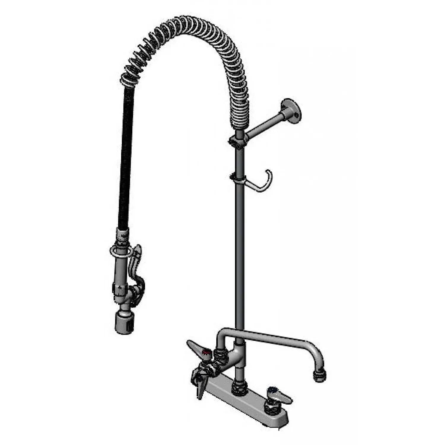 Facilitate Smooth Operation with the T&S Brass, B-5120-12-BJ Pre-Rinse Faucet Assembly. Designed for commercial restaurant use, this deck mount workboard unit is a must-have for any busy kitchen. With its Eterna cartridge, the faucet ensures long-lasting durability and reliable performance. The included B-0107-J spray valve offers a flow rate of 1.07 GPM at 60 psi, allowing for efficient rinsing and cleaning. The 12" add-on faucet provides additional versatility, perfect for filling pots or washing utensils. The wall bracket ensures secure installation, keeping the unit stable during use. With a pressure range of 20-125 psi and a temperature range of 40°F-140°F, this pre-rinse faucet assembly can handle the demands of a high-volume restaurant kitchen. Trust T&S Brass, a reputable vendor known for their quality products, to deliver a reliable and efficient solution for your restaurant's needs.