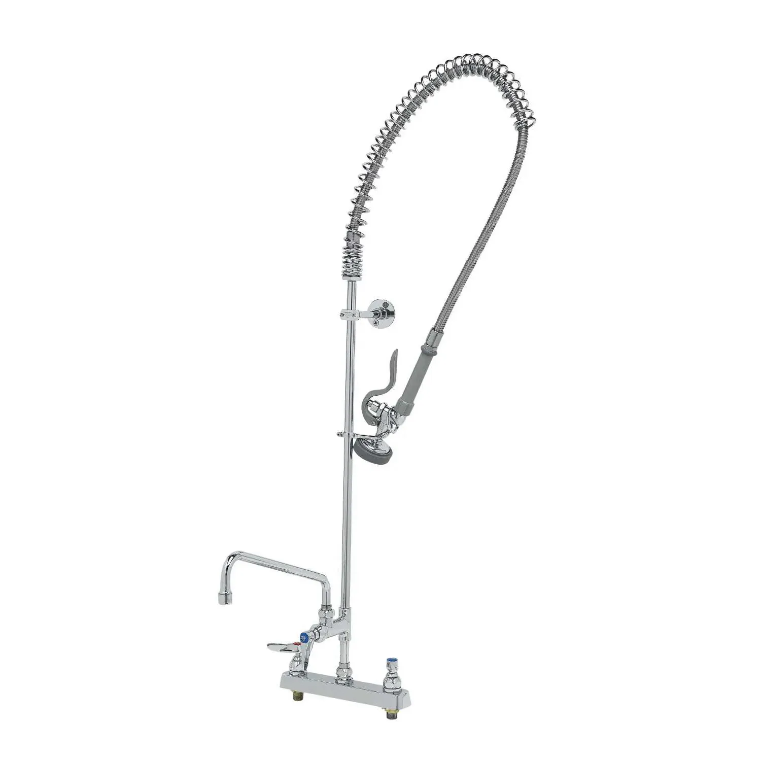 Enhance Equipment Performance with the T&S Brass, B-5120-12-CR-B Pre-Rinse Faucet Assembly. Designed specifically for commercial restaurant use, this deck mount workboard unit is a must-have for any busy kitchen. The polished chrome plated brass body ensures durability and longevity, while the 12" add-on faucet provides additional functionality. With a 12" swing nozzle and stream regulator outlet, this pre-rinse faucet assembly allows for efficient cleaning and rinsing of dishes, pots, and pans. The Cerama coating adds an extra layer of protection, making it resistant to scratches and stains. Easy to install and use, this pre-rinse faucet assembly is a reliable and convenient choice for any restaurant. Trust T&S Brass, a reputable vendor known for their high-quality products, to enhance your equipment performance and streamline your kitchen operations.