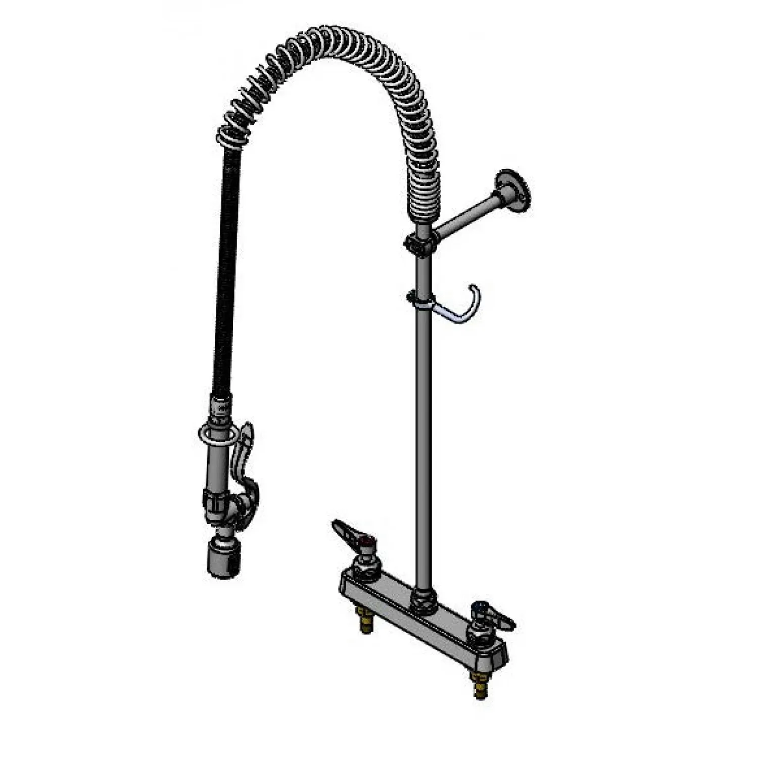 Optimize System Durability with the T&S Brass, B-5120-CR-BJ Pre-Rinse Faucet Assembly. This 8" deck mount workboard unit is designed specifically for commercial restaurant use, ensuring maximum efficiency and reliability. The faucet assembly includes a Cerama cartridge, B-0107-J spray valve, and wall bracket, providing a complete solution for pre-rinsing dishes and utensils. With a pressure range of 20 - 125 psi and a temperature range of 40°F - 140°F, this pre-rinse unit can handle the demands of a busy kitchen. The flow rate of 1.07 GPM at 60 psi ensures thorough cleaning while conserving water. Built by T&S Brass, a trusted name in the industry, this pre-rinse faucet assembly is packed with features that enhance durability and performance. Upgrade your restaurant's kitchen with the T&S Brass, B-5120-CR-BJ Pre-Rinse Faucet Assembly and experience the difference in efficiency and reliability.