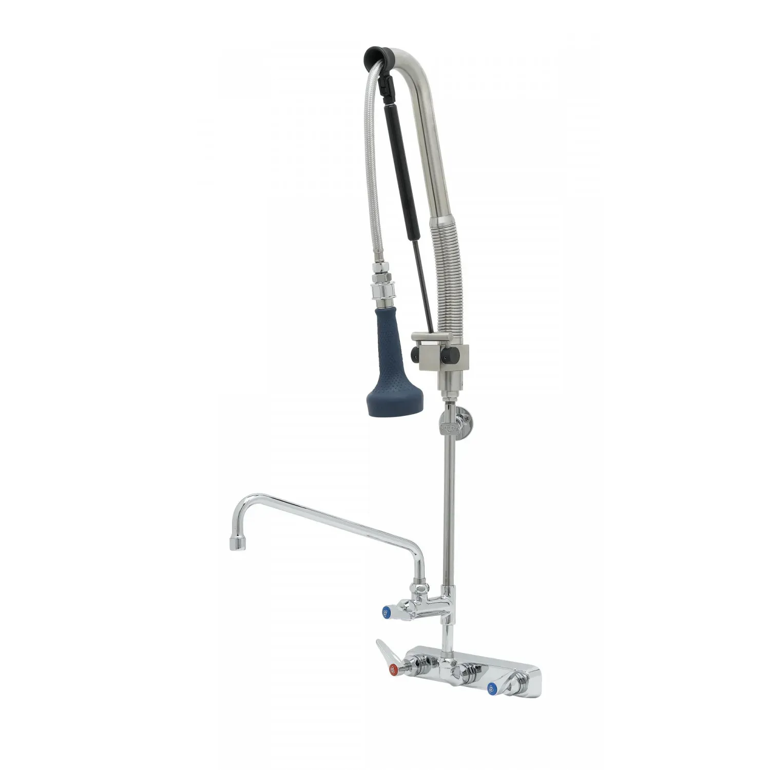 Secure Operational Integrity with the T&S Brass B-5125-12-CRB8P Pre-Rinse Faucet Assembly. Designed specifically for commercial restaurant use, this faucet assembly ensures reliable performance and durability. The 8" wall mount workboard faucet features a polished chrome plated brass body, adding a touch of elegance to your kitchen. The easy-install add-on faucet also boasts a polished chrome plated brass body, providing a seamless and stylish addition to your workspace. With a 12" swing nozzle and stream regulator outlet, this assembly offers versatility and convenience for various tasks. The Series 1 design further enhances its functionality and efficiency. Upgrade your restaurant's kitchen with the T&S Brass B-5125-12-CRB8P Pre-Rinse Faucet Assembly and experience the benefits of a reliable and efficient plumbing solution.