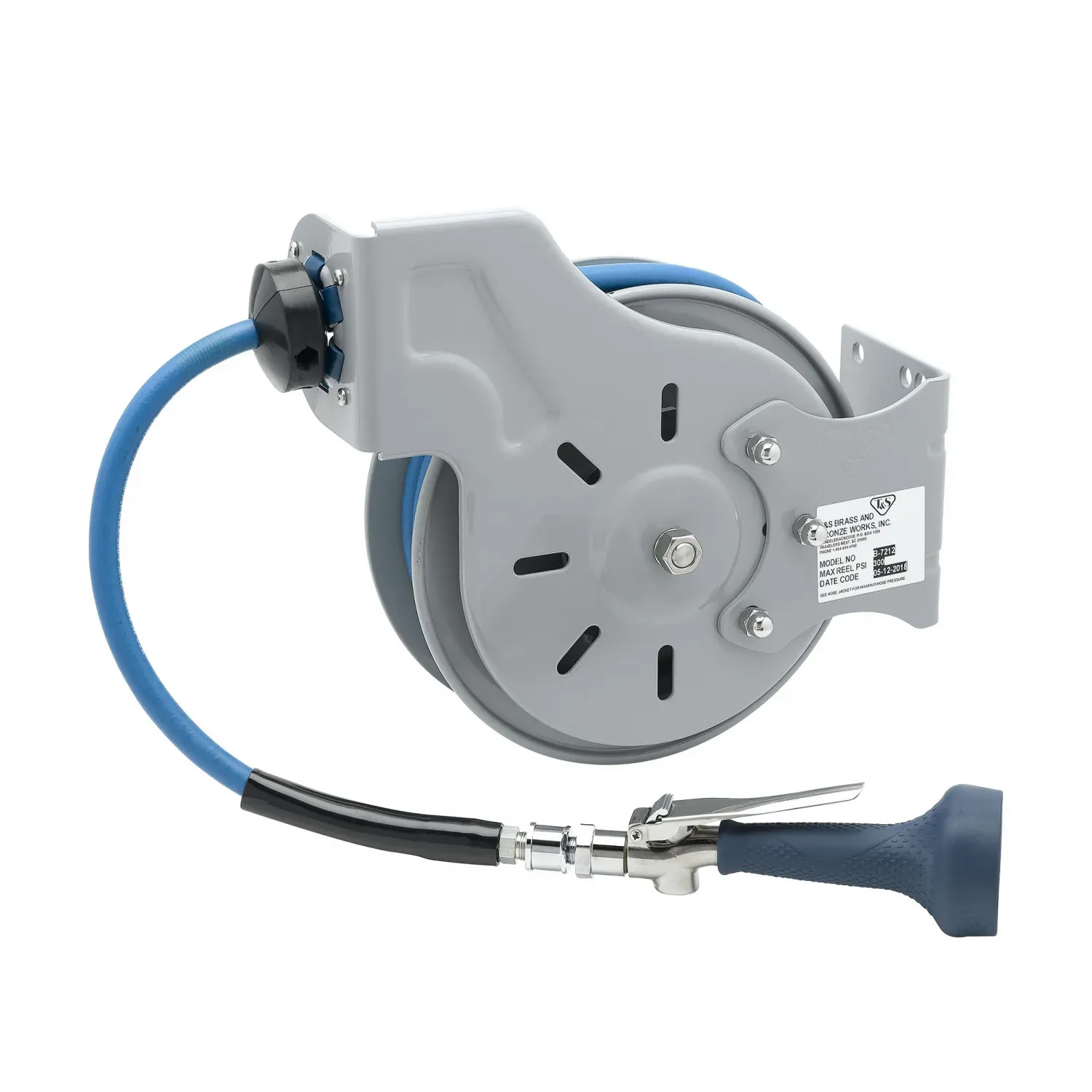 Maintain Equipment Integrity with the T&S Brass, B-7212-08H, Hose Reel Assembly. This open epoxy coated hose reel is designed to withstand the demands of a commercial restaurant setting. With a high flow JetSpray valve featuring a heat insulated handle and swivel, this hose reel assembly ensures efficient and reliable performance. The 3/8" x 15' heavy-duty non-marking hose is rated to 300 PSI, providing the necessary strength and durability for everyday use. Whether you need to clean dishes, rinse produce, or tackle other cleaning tasks, this hose reel assembly is up to the challenge. Its epoxy coating adds an extra layer of protection against corrosion and wear, ensuring long-lasting performance. Trust T&S Brass, a reputable vendor known for their quality products, to deliver a hose reel assembly that meets the needs of your commercial restaurant.