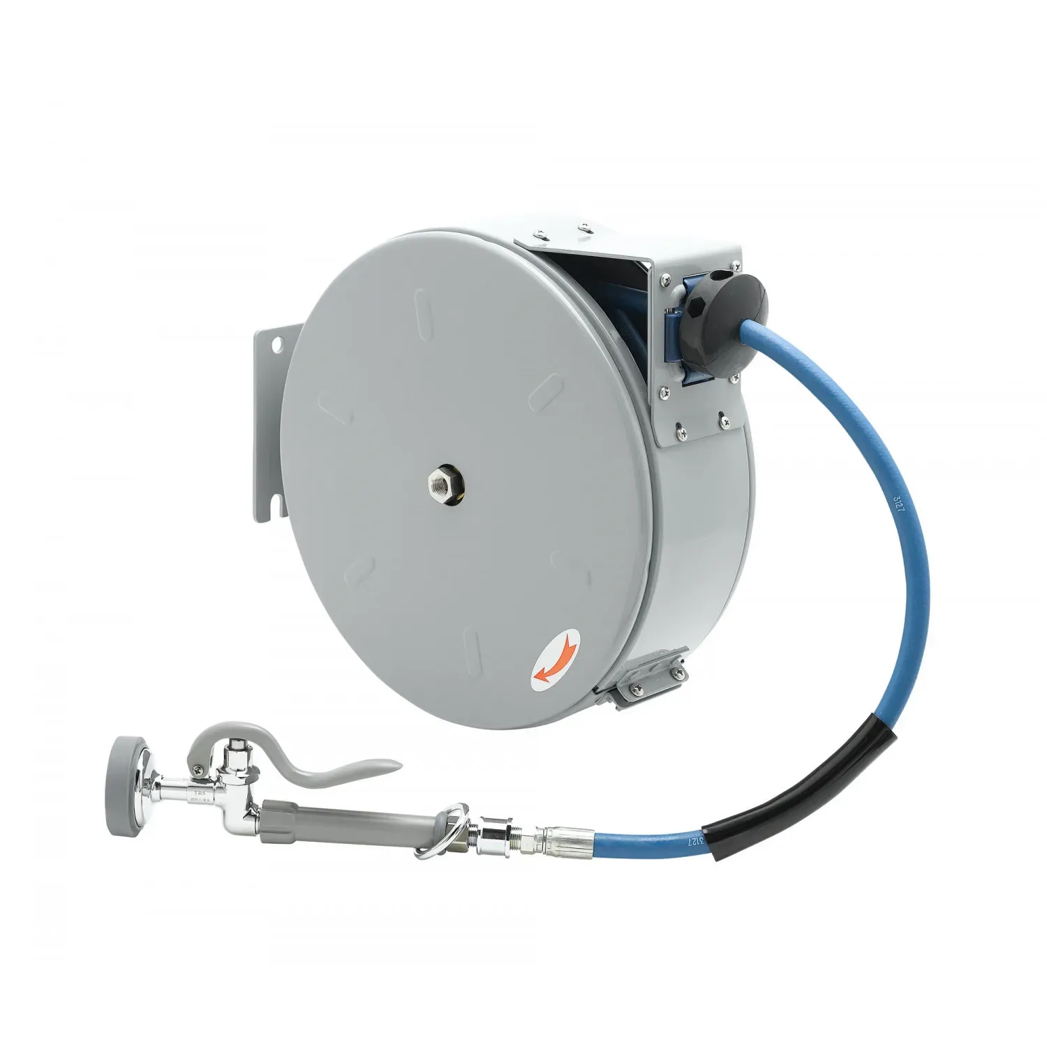 Optimize Operational Functionality with the T&S Brass, B-7222-C01M, Hose Reel Assembly. This high-quality hose reel is designed to enhance efficiency in commercial restaurant settings. The enclosed epoxy coated steel construction ensures durability and longevity, making it perfect for heavy-duty use. The 3/8" x 30' heavy-duty non-marking hose is rated to 300 PSI, providing ample water pressure for various tasks. With a 1.15 GPM spray valve and swivel, this hose reel assembly offers flexibility and ease of use. Whether you need to clean dishes, rinse produce, or tackle other cleaning tasks, this hose reel assembly has got you covered. It comes packed with care by T&S Brass, a trusted name in the industry. Upgrade your restaurant's operations with the T&S Brass, B-7222-C01M, Hose Reel Assembly.