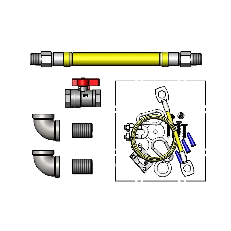 Enhance Equipment Quality with T&S Brass, HG-4D-60K-FF, Appliance Connectors. Designed specifically for commercial restaurant use, this gas hose and quick-disconnect kit ensures the highest standards of safety and efficiency in your kitchen. With a 3/4" NPT x 60" length, this appliance connector provides a secure and reliable connection between your gas equipment and supply. The included cable kit, ball valve, gas elbows, and nipples offer added convenience and flexibility during installation. T&S Brass, a trusted name in the industry, guarantees the quality and durability of this product. Whether you're setting up a new restaurant or upgrading your existing equipment, the HG-4D-60K-FF Appliance Connectors are a must-have. Ensure smooth operations and peace of mind with this essential component for your commercial kitchen. Trust T&S Brass to deliver the reliability and performance you need.