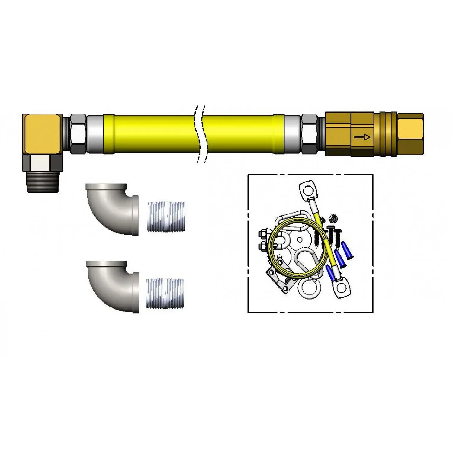 Maintain Equipment Reliability with the T&S Brass HG-4E-48SEL-FF Gas Connector Hose Kit / Assembly. Designed specifically for commercial restaurant use, this kit ensures the safe and efficient operation of your gas-powered equipment. With its 1" NPT x 48" long gas hose, swivelink, quick-disconnect, and FF elbows, this kit provides a secure and flexible connection between your gas supply and equipment. The included cable kit adds an extra layer of protection, preventing accidental damage to the hose. Whether you're running a busy kitchen or a bustling restaurant, this gas connector hose kit is a must-have for maintaining the reliability and safety of your equipment. Invest in the T&S Brass HG-4E-48SEL-FF Gas Connector Hose Kit / Assembly and keep your restaurant running smoothly.