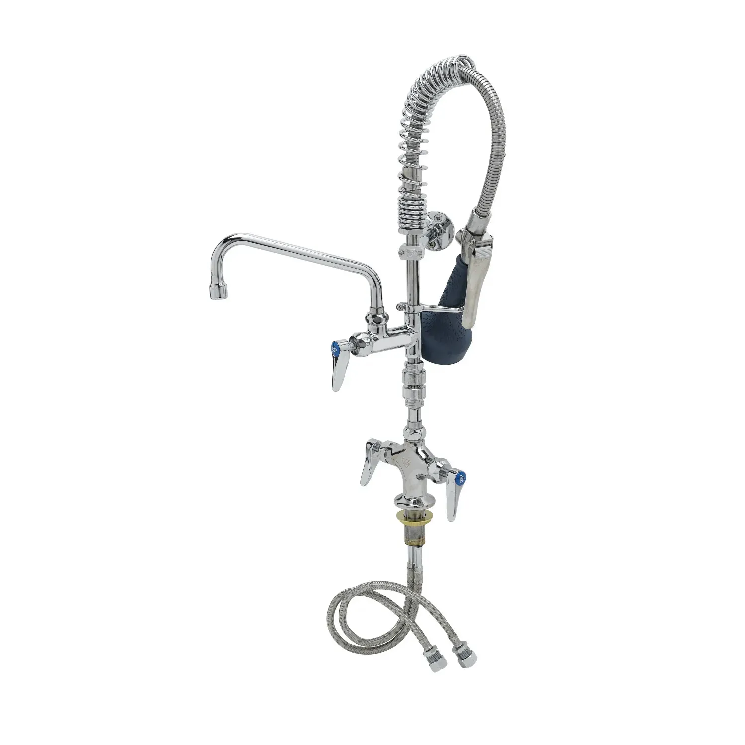 Enhance Equipment Quality with T&S Brass, MPQ-2DLV-08-CR, Pre-Rinse Faucet Assembly, Mini. This single hole deck mount mixing faucet is a must-have for any commercial restaurant. With its polished chrome plated brass body and 2 1/4" deck flange, it not only adds a touch of elegance to your kitchen but also ensures durability and longevity. The easy-install add-on faucet with a polished chrome plated brass body provides convenience and flexibility in your daily operations. The continuous pressure vacuum breaker guarantees the safety of your water supply, protecting against backflow contamination. Designed by T&S Brass, a trusted name in the industry, this pre-rinse faucet assembly is built to withstand the demands of a busy restaurant kitchen. Whether you're washing dishes, rinsing produce, or cleaning countertops, this mini pre-rinse faucet assembly is the perfect companion for your commercial restaurant. Upgrade your equipment quality with T&S Brass.