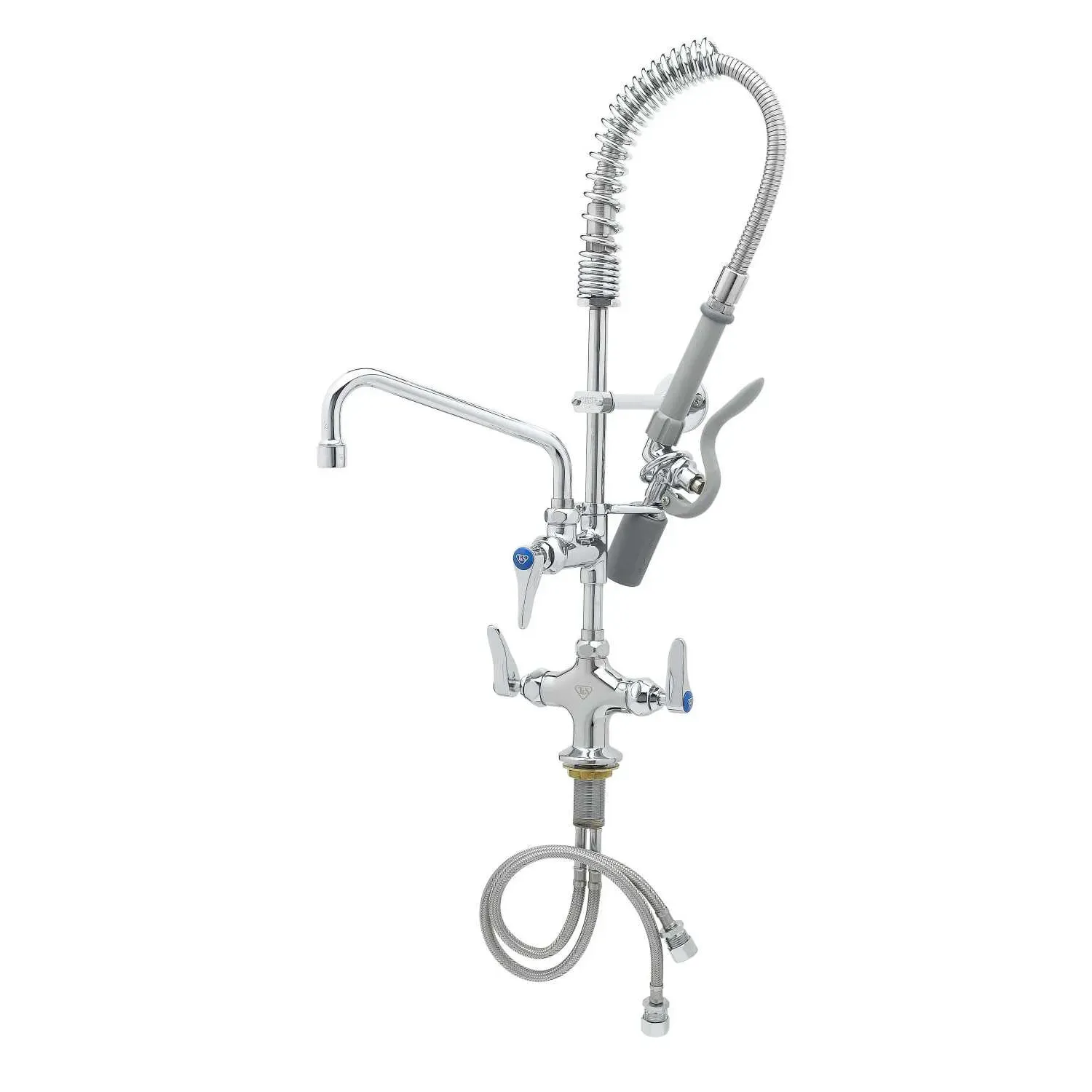 Maintain Equipment Functionality with the T&S Brass, MPY-2DLN-08, Pre-Rinse Faucet Assembly, Mini. This single hole deck mount mixing faucet is designed to keep your commercial restaurant running smoothly. With its polished chrome plated brass body and 2 1/4" deck flange, this faucet not only adds a touch of elegance to your kitchen but also ensures durability and longevity. The easy-install add-on faucet with a polished chrome plated brass body provides convenience and flexibility in your workspace. The 8" swing nozzle with a stream regulator outlet allows for precise control and efficient rinsing. Whether you're washing dishes, prepping ingredients, or cleaning surfaces, this pre-rinse faucet assembly is a must-have for any commercial kitchen. Trust T&S Brass, a reputable vendor known for their quality products, to deliver exceptional performance and reliability. Upgrade your restaurant's equipment with the T&S Brass, MPY-2DLN-08, Pre-Rinse Faucet Assembly, Mini and experience the difference it makes in your daily operations.
