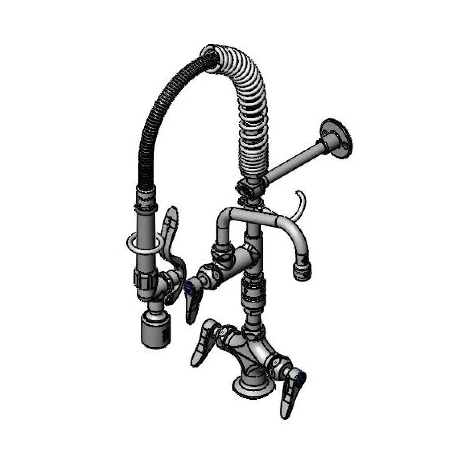 Optimize Equipment Use with T&S Brass, MPY-2DLV-06-CR, Pre-Rinse Units. This mini-PRU is perfect for commercial restaurant use. With its single hole deck mount design and polished chrome plated brass body, it adds a touch of elegance to any kitchen. The add-on faucet features a ceramic cartridge and lever handle for easy operation and durability. The 6" swing nozzle with a stream regulator outlet allows for precise control of water flow. The 5 3/16" riser and vacuum breaker ensure safety and compliance with industry standards. The 24" flexible stainless steel hose with a heat resistant handle provides flexibility and convenience. The 0.65 GPM low flow spray valve saves water without compromising performance. With ceramic cartridges and check valves, this pre-rinse unit is built to last. The 18" flexible stainless steel supply hoses with 1/2" NPSM / 5/8" compression connections offer easy installation. The 6" adjustable wall bracket and spray valve holder provide versatility and convenience. Certified to ASME A112.18.1/CSA B125.1, NSF 61-Section 9, and NSF 372, this pre-rinse unit meets the highest standards of quality and safety. Upgrade your restaurant's kitchen with the T&S Brass, MPY-2DLV-06-CR, Pre-Rinse Units.