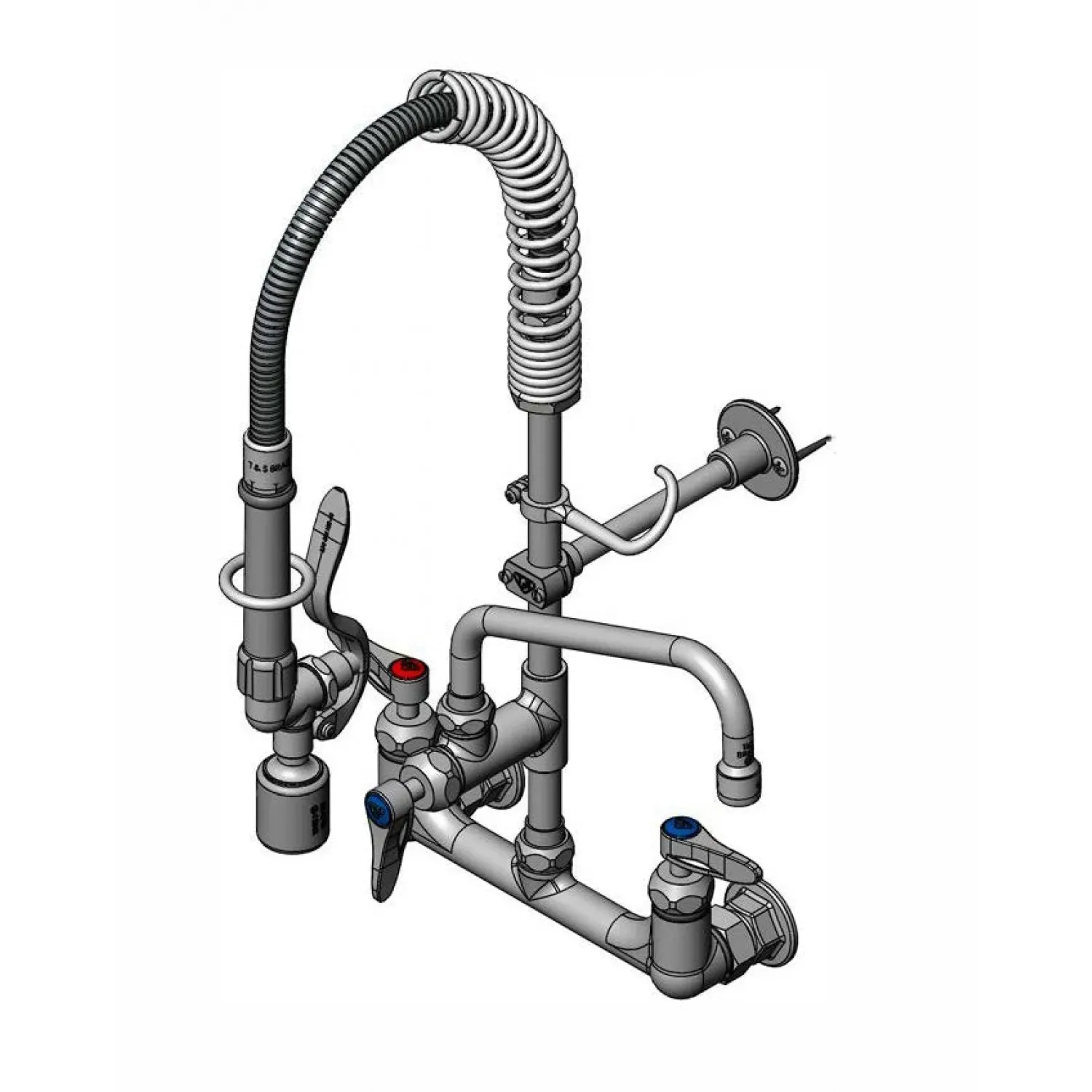 Ensure smooth operation with the T&S Brass MPY-8WLN-08-CR Pre-Rinse Faucet Assembly, Mini. Designed for commercial restaurant use, this high-quality faucet assembly is a must-have for any busy kitchen. With its 8" wall mount base and 8" swing nozzle, it provides easy access to water wherever it's needed. The lever handles offer precise control over water flow and temperature, ensuring efficient and accurate dishwashing. The CV Ceramas technology guarantees durability and long-lasting performance, even in the toughest kitchen environments. Whether you're rinsing dishes, cleaning produce, or filling pots, this mini pre-rinse faucet assembly will help you get the job done quickly and effectively. Upgrade your kitchen with the T&S Brass MPY-8WLN-08-CR and experience the difference it makes in your daily operations.