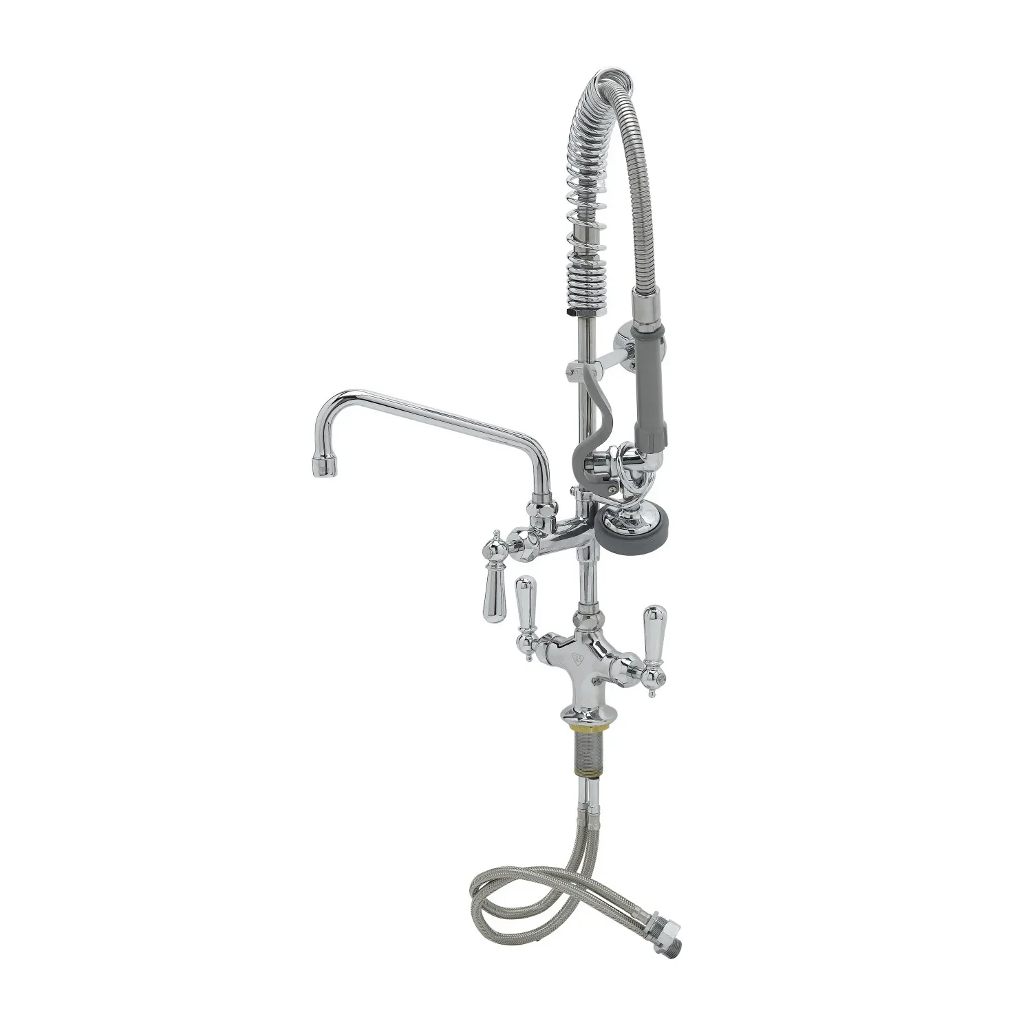 Maximize System Efficiency with the T&S Brass, MPZ-2DCN-08-CR Pre-Rinse Faucet Assembly. Designed specifically for commercial restaurant use, this mini pre-rinse faucet assembly is a game-changer in terms of efficiency and convenience. With its single hole deck mount and polished chrome plated brass body, this faucet not only adds a touch of elegance to your kitchen but also ensures durability and longevity. The 8" swing nozzle with a stream regulator outlet allows for precise control and easy cleaning of dishes, pots, and pans. The easy-install add-on faucet further enhances functionality, making it a versatile choice for any busy restaurant kitchen. With T&S Brass, you can trust in the quality and reliability of their products. Upgrade your restaurant's efficiency and streamline your dishwashing process with the T&S Brass, MPZ-2DCN-08-CR Pre-Rinse Faucet Assembly.