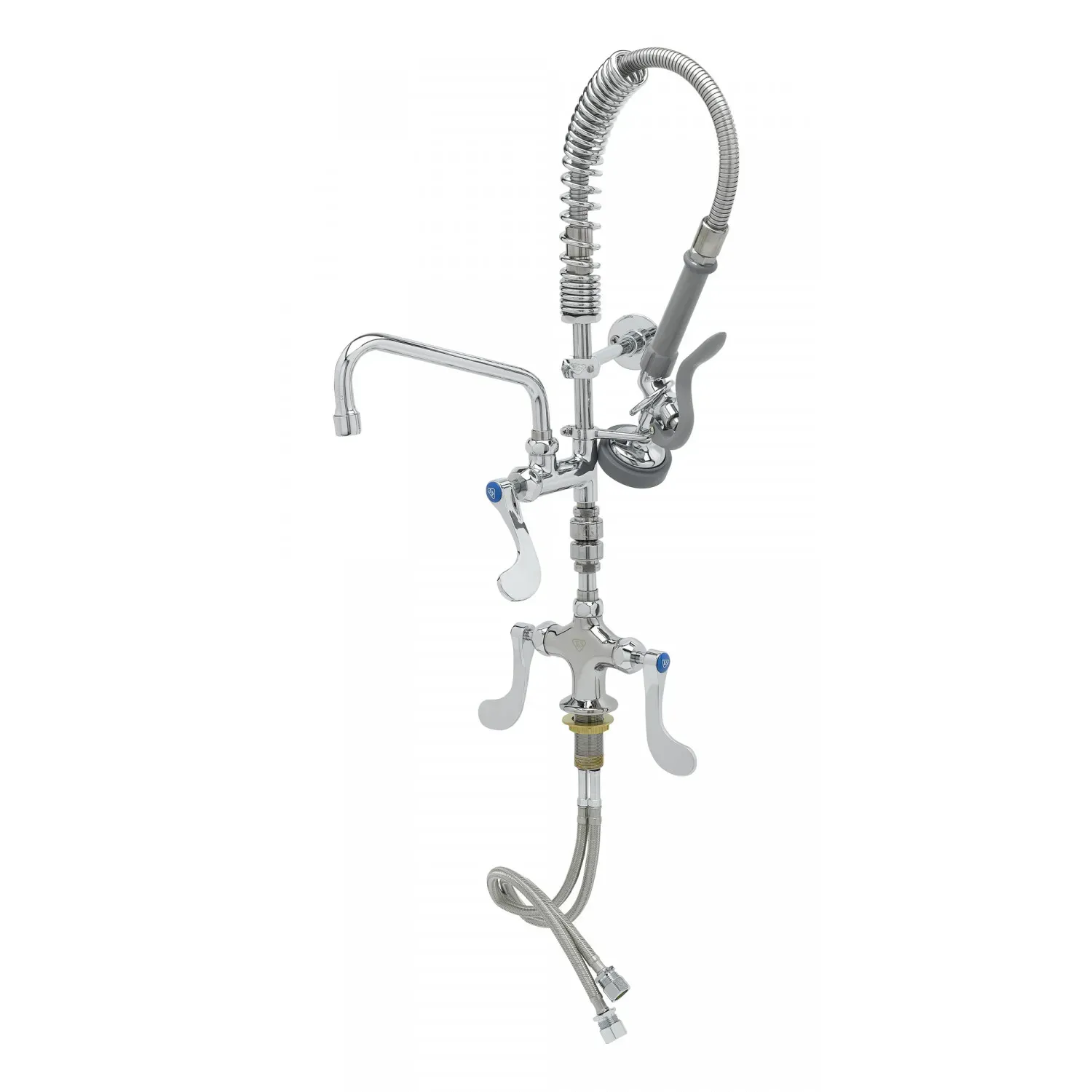 Ensure System Integrity with the T&S Brass MPZ-2DWV-08-CR Pre-Rinse Faucet Assembly. Designed specifically for commercial restaurant use, this mini pre-rinse faucet assembly guarantees optimal performance and durability. With its polished chrome plated brass body and 2 1/4" deck flange, this single hole deck mount mixing faucet adds a touch of elegance to any kitchen. The easy-install add-on faucet also features a continuous pressure vacuum breaker, ensuring a safe and reliable water supply. Whether you're rinsing dishes, cleaning countertops, or washing produce, this pre-rinse faucet assembly is a must-have for any busy restaurant kitchen. Trust T&S Brass to deliver exceptional quality and functionality for all your commercial restaurant needs.