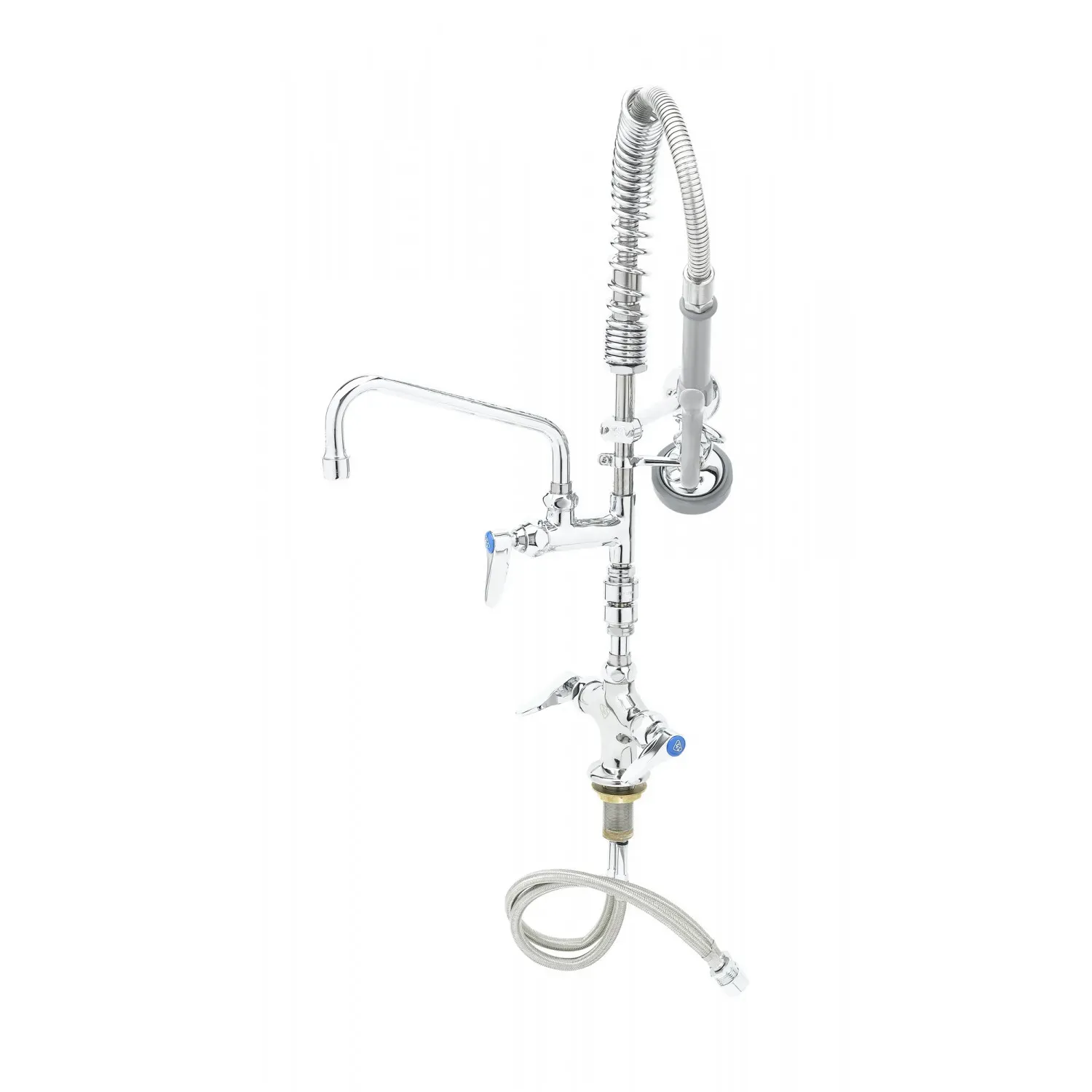 Ensure Consistent Performance with the T&S Brass MPZ-2DWV-08 Pre-Rinse Faucet Assembly. Designed specifically for commercial restaurant use, this mini pre-rinse faucet assembly guarantees reliable and efficient performance in any busy kitchen. With its single hole deck mount and polished chrome plated brass body, this faucet not only adds a touch of elegance to your space but also ensures durability and longevity. The easy-install add-on faucet with a polished chrome plated brass body provides convenience and versatility, allowing you to tackle various tasks effortlessly. The continuous vacuum breaker prevents backflow, ensuring the safety and cleanliness of your water supply. Upgrade your restaurant's kitchen with the T&S Brass MPZ-2DWV-08 Pre-Rinse Faucet Assembly and experience consistent performance that exceeds expectations.