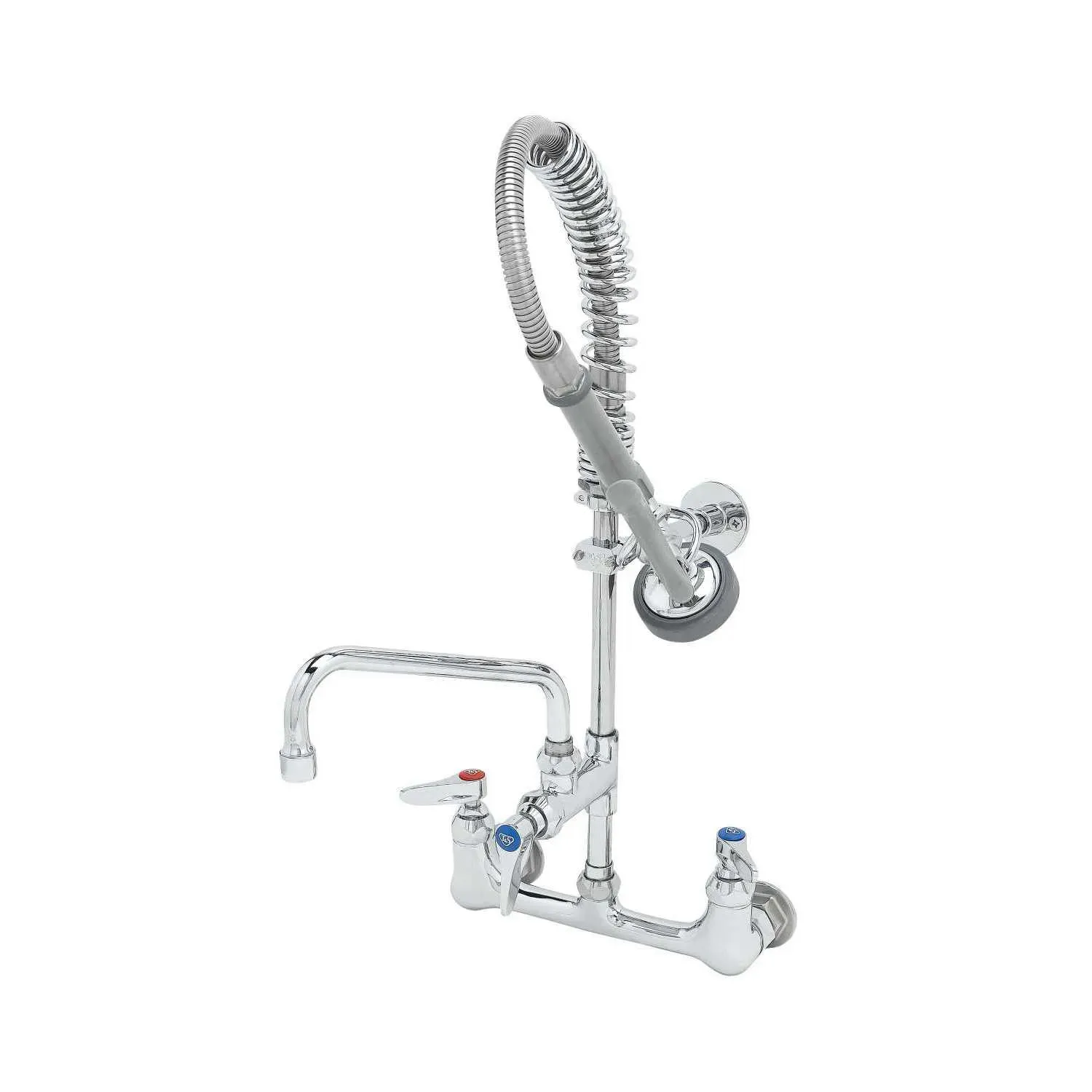 Maintain Equipment Reliability with T&S Brass, MPZ-8WLN-06, Pre-Rinse Faucet Assembly, Mini. This 8" wall mount mixing faucet is a must-have for any commercial restaurant. With its polished chrome plated brass body, it not only adds a touch of elegance to your kitchen but also ensures durability and longevity. The EasyInstall add-on faucet makes installation a breeze, saving you time and effort. Designed specifically for commercial use, this pre-rinse faucet assembly is perfect for washing dishes, rinsing produce, and cleaning kitchen equipment. Its compact size makes it ideal for smaller spaces, while still providing the power and functionality you need. The T&S Brass MPZ-8WLN-06 comes packed with features that enhance efficiency and convenience in a busy restaurant environment. Trust T&S Brass to deliver reliable and high-quality products that meet the demands of your commercial kitchen.