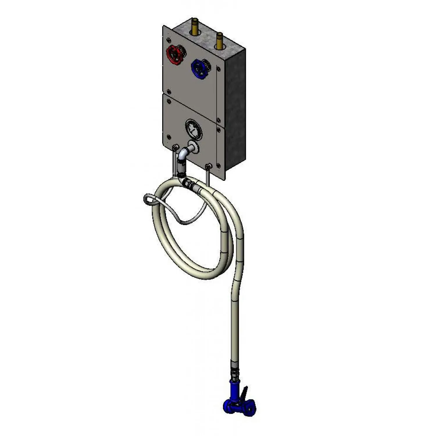 Maintain System Efficiency with the T&S Brass MV-0771-12R Washdown System. Designed specifically for commercial restaurant use, this recessed cabinet and washdown station is a must-have for any busy kitchen. The system includes a 50' hose and water gun, allowing for easy and efficient cleaning of surfaces and equipment. The rear trigger stainless steel water gun features a rubber cover for a comfortable grip, while the 9/16" orifice ensures a powerful spray. The brass thermometer tee and stainless steel thermometer provide accurate temperature readings, with a range of 0°F to 200°F. With its durable construction and reliable performance, this washdown system is built to withstand the demands of a commercial kitchen. Trust T&S Brass, a trusted name in the industry, to keep your restaurant running smoothly and efficiently.