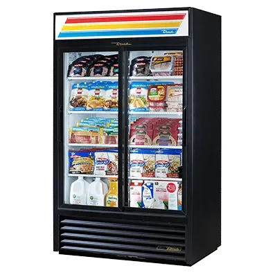 Deliver food perfection with the True Manufacturing GDM-41-HC-LD Refrigerator Merchandiser. This two-section refrigerated merchandiser is designed to meet the needs of commercial restaurants, ensuring that your food stays fresh and easily accessible. With eight shelves and two Low-E thermal glass sliding doors, you can showcase your products in an attractive and efficient manner. The LED interior lights illuminate your items, making them even more enticing to customers. The powder-coated steel exterior and white interior with a stainless steel floor not only provide durability but also give a sleek and professional look to your establishment. The leg levelers ensure stability, while the R290 Hydrocarbon refrigerant and 1/2 HP compressor keep your food at the perfect temperature. Made in the USA and certified by cULus and UL EPH Classified, this True Manufacturing Refrigerator Merchandiser is a reliable and high-quality addition to any commercial kitchen.