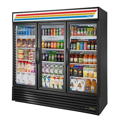 Empower your kitchen staff with the True Manufacturing GDM-72-HC~TSL01 Refrigerator Merchandiser. This three-section refrigerated merchandiser is perfect for commercial restaurant use. With its 12 shelves and three double pane thermal insulated glass hinged doors, you can easily showcase a wide variety of food and beverages to attract customers. The LED interior lights provide excellent visibility, while the powder coated steel exterior ensures durability and a sleek look. The white interior with a stainless steel floor adds a touch of elegance to your establishment. This refrigerator merchandiser is also energy-efficient, thanks to the R290 Hydrocarbon refrigerant and ENERGY STAR certification. With a 1/2 HP compressor and 115v/60/1-ph power supply, this unit is powerful enough to meet the demands of a busy restaurant. Trust True Manufacturing, a reputable vendor known for their high-quality products made in the USA. Upgrade your restaurant's refrigeration system with the True Manufacturing GDM-72-HC~TSL01 Refrigerator Merchandiser.
