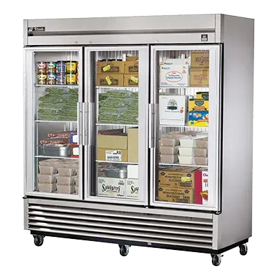 Enhance your commercial kitchen with the True Manufacturing TS-72FG-HC~FGD01 Freezer, Reach-In. This three-section reach-in freezer is designed to meet the demands of a busy restaurant kitchen. With its -10F temperature, it ensures that your ingredients and prepared dishes stay fresh and frozen. The framed glass doors not only provide a sleek and modern look but also allow you to easily see the contents inside without opening the doors, saving you time and energy. The stainless steel front, sides, and interior make this freezer durable and easy to clean, while the nine gray PVC coated wire shelves provide ample storage space. The LED interior lighting illuminates the freezer, making it easy to find what you need. With its 4" castors, this freezer is also easy to move and position in your kitchen. Made in the USA and certified by cULus and UL EPH Classified, you can trust the quality and reliability of this True Manufacturing freezer. Upgrade your kitchen with the TS-72FG-HC~FGD01 and experience the convenience and efficiency it brings to your restaurant operations.