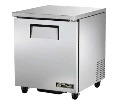 Master the art of cooking with the True Manufacturing TUC-27-HC Undercounter Reach-In Refrigerator. This top-of-the-line refrigerator is designed to meet the demanding needs of commercial restaurants. With its stainless steel top and sides, it not only looks sleek and professional but also ensures durability and easy cleaning. The clear coated aluminum interior with a stainless steel floor provides a hygienic and spacious storage space for your ingredients. The refrigerator maintains a temperature range of 33 - 38F, keeping your perishable items fresh and ready for use. Equipped with a stainless steel door and two shelves, this unit offers ample storage capacity. The 5" castors allow for easy mobility, making it convenient to move the refrigerator wherever it's needed. Made in the USA, this True Manufacturing refrigerator is not only reliable but also energy-efficient, thanks to its R290 Hydrocarbon refrigerant. Upgrade your kitchen with the TUC-27-HC and experience the difference in performance and quality.