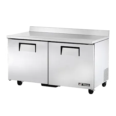 Realize kitchen dreams with the True Manufacturing TWT-60F-HC Freezer Counter. This two-section work top freezer is designed to meet the demands of a busy commercial restaurant. With a stainless steel top and rear splash, as well as stainless steel doors and sides, this freezer counter is not only durable but also easy to clean. The aluminum interior with a stainless steel floor ensures optimal temperature retention, while the four shelves provide ample storage space for all your frozen ingredients. The 5" castors make it easy to move the freezer counter around the kitchen, and the rear mount design maximizes space efficiency. With a 1/2 HP compressor and R290 Hydrocarbon refrigerant, this freezer counter is energy-efficient and environmentally friendly. Trust True Manufacturing to deliver high-quality, reliable equipment for your restaurant needs.