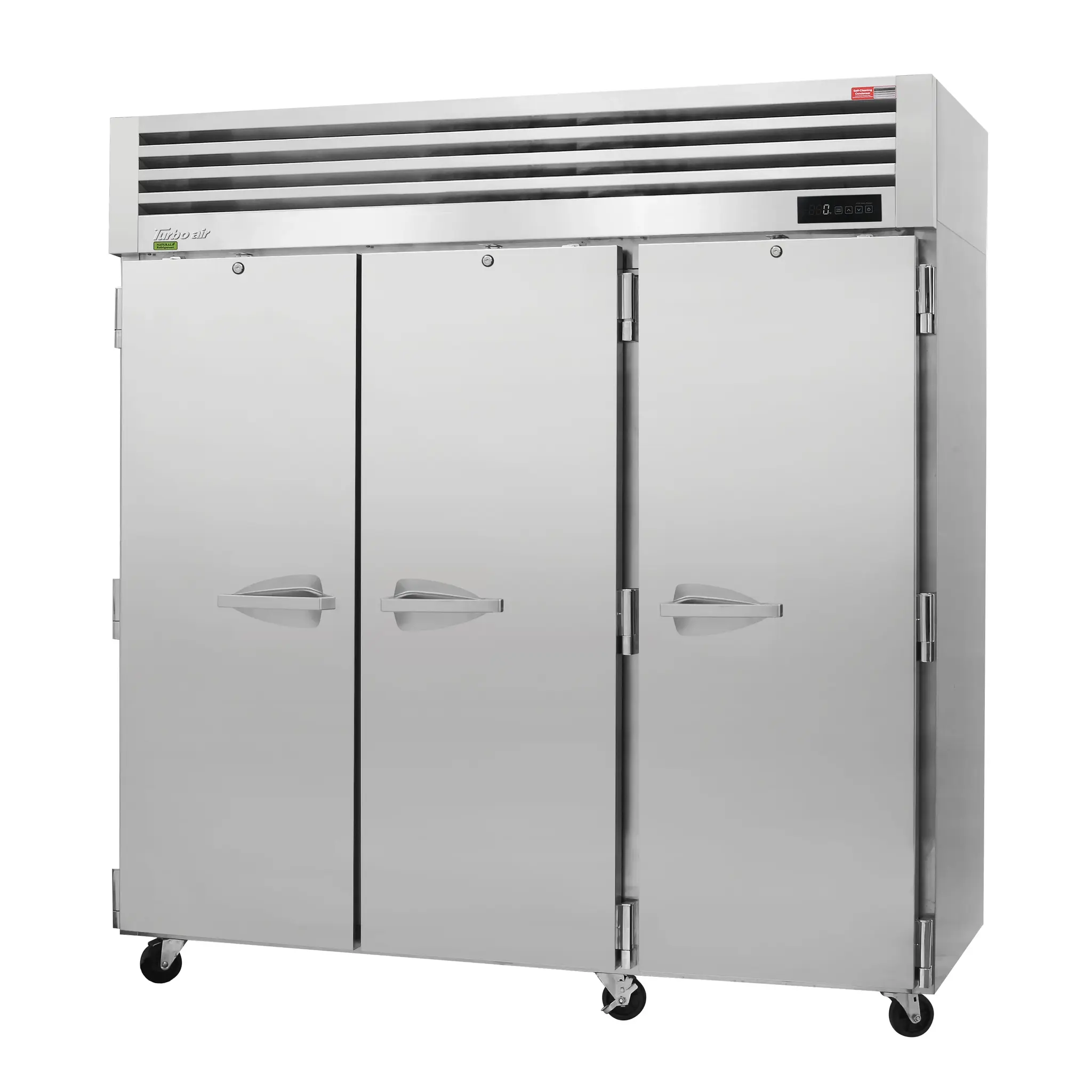 Serve with pride with the Turbo Air PRO-77F-N Freezer, Reach-In. This top-of-the-line freezer is designed to meet the demands of a busy commercial restaurant. With a spacious 74.94 cu. ft. capacity, it provides ample storage space for all your frozen goods. The exterior LED digital temperature controller allows for precise temperature control, ensuring your food stays at the optimal temperature for freshness. The door-open alarm beeps to alert you if the door is left open, preventing any potential food spoilage. The self-diagnostic monitoring system and automatic fan motor delays help to maintain the freezer's performance and efficiency. The LED interior lighting illuminates the contents, making it easy to find what you need. The extra deep design and (9) stainless steel wire shelves provide flexibility and organization. Made in the USA with high-quality stainless steel construction, this freezer is built to last. With its top mount self-contained compressor and R290 Hydrocarbon refrigerant, it is both energy-efficient and environmentally friendly. Upgrade your restaurant's freezer with the Turbo Air PRO-77F-N.