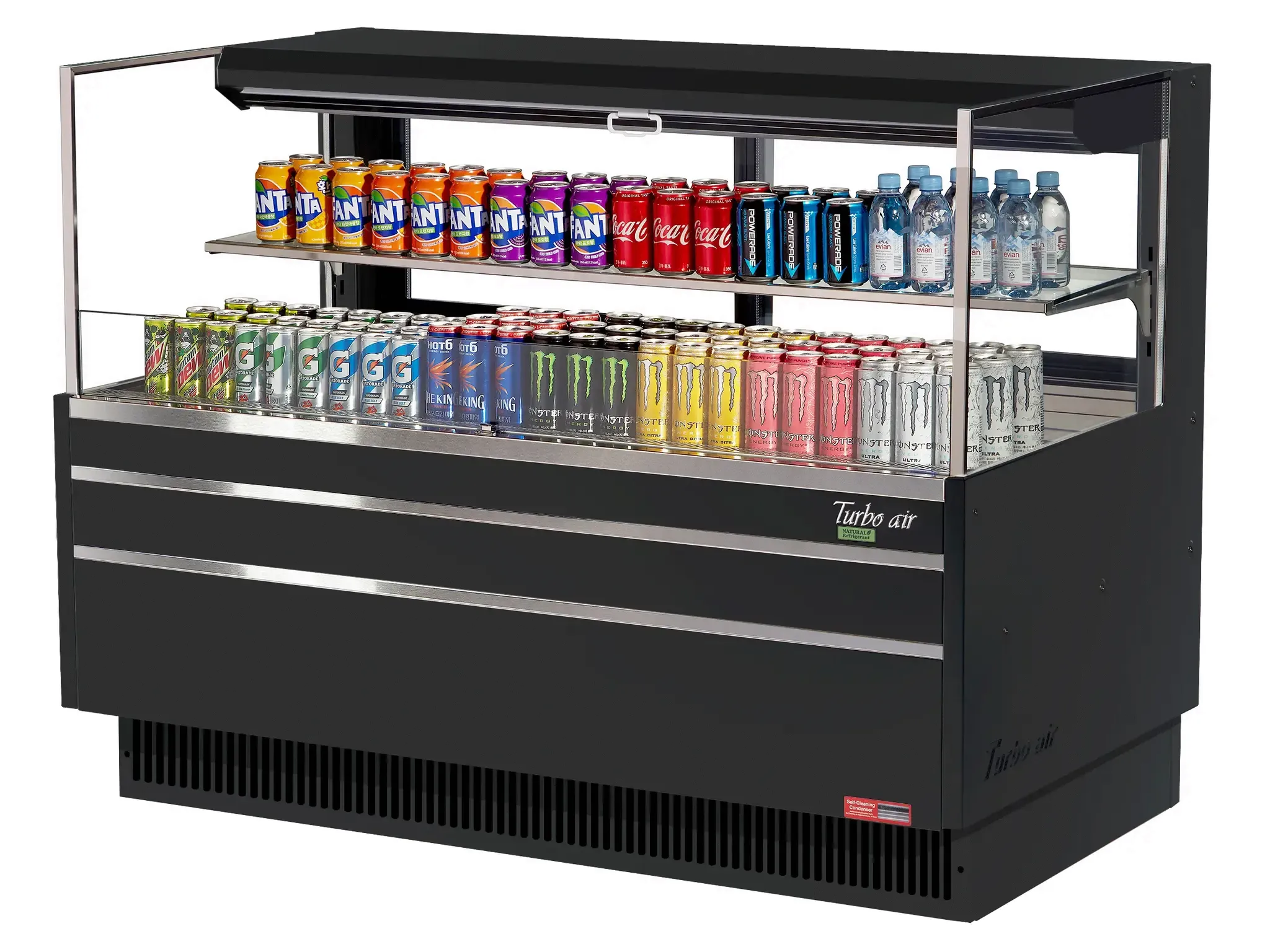 Unleash your inner chef with the Turbo Air TOM-60L-UFD-W(B)-2S-N Open Display Case. This modern and sleek display case is designed to enhance impulse sales in a commercial restaurant setting. With its low profile and glass side panels, it provides a clear view of your delicious offerings, enticing customers to make a purchase. The self-cleaning condenser and hydrocarbon refrigerants ensure optimal performance and energy efficiency, while the LED interior lighting illuminates your products beautifully. The perforated glass doors and open top improve airflow, keeping your food fresh and appetizing. Loading and unloading products is a breeze with the sliding rear door, and the energy-saving night curtain helps conserve energy during off-peak hours. With a stainless steel solid shelf and a glass shelf, you have plenty of space to showcase your culinary creations. Choose between white and black color options to match your restaurant's aesthetic. Trust Turbo Air, a reputable vendor known for their high-quality products, to elevate your restaurant's display game.