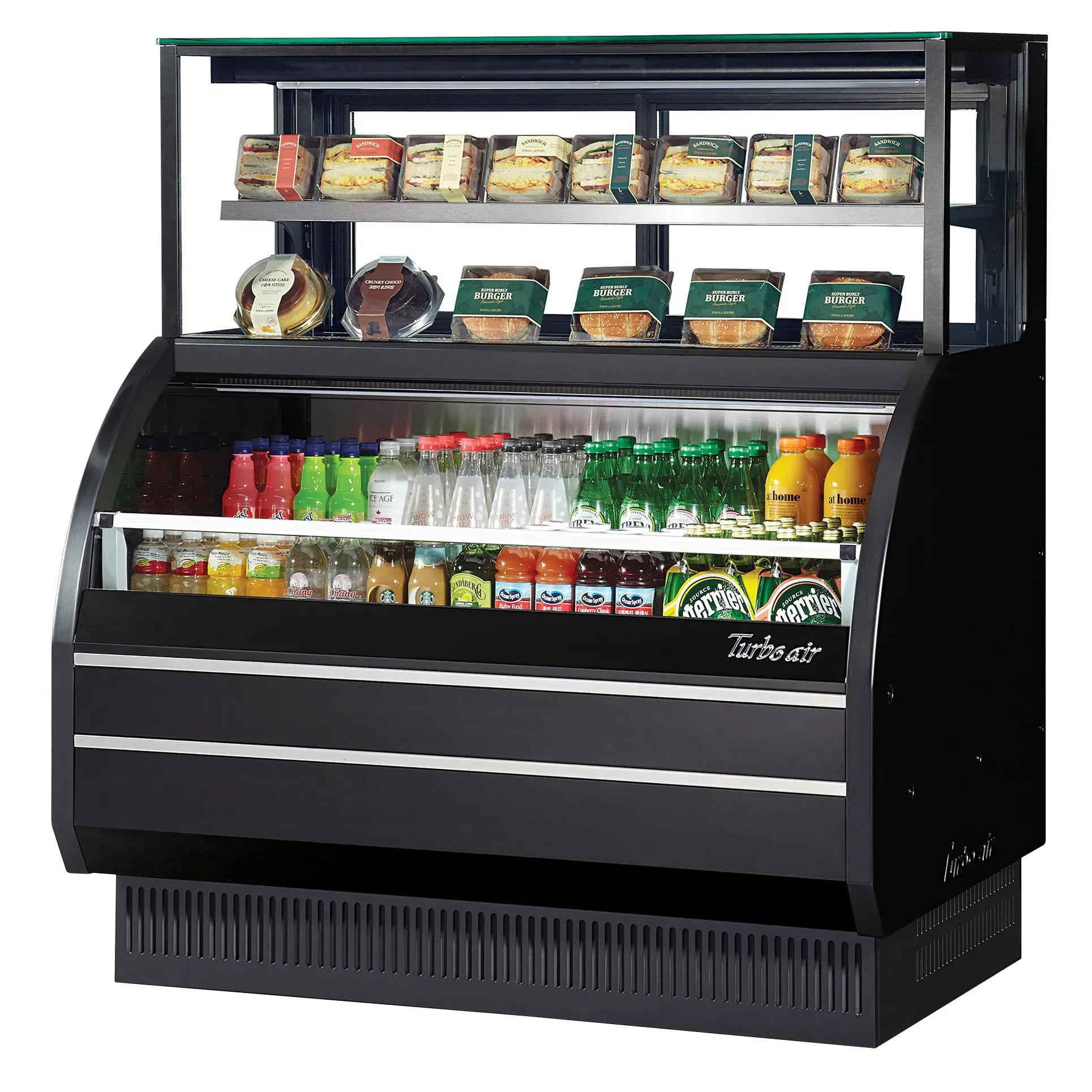 Achieve kitchen supremacy with the Turbo Air TOM-W-60SB-UF-N Merchandiser, Open Refrigerated Display. This top-of-the-line open display merchandiser combination case is designed to elevate your restaurant's efficiency and style. With a spacious 62 5/8" width, 34" depth, and 56 1/2" height, it offers ample space to showcase your delectable offerings. The self-cleaning condenser device ensures optimal performance and reduces maintenance needs, while the LED interior lighting beautifully illuminates your products. The stainless steel shelves provide durability and easy cleaning, while the stainless steel interior exudes a sleek and professional look. The front air intake and rear air discharge ensure consistent cooling throughout the unit. With a self-contained system and R290 Hydrocarbon refrigerant, this merchandiser is both eco-friendly and energy-efficient. Powered by two 3/4 HP motors, it delivers reliable performance. Whether you're displaying chilled beverages, fresh produce, or mouthwatering desserts, the Turbo Air TOM-W-60SB-UF-N Merchandiser is the perfect addition to your commercial restaurant.