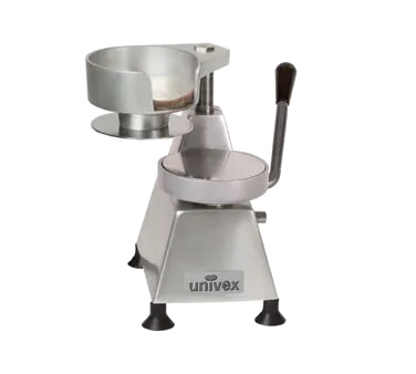 Where Innovation Meets Flavor with Univex, 1406, Hamburger Patty Press, Countertop. Elevate your burger game with this high-quality patty press from Univex. Designed for commercial restaurant use, this manual press is perfect for creating perfectly shaped 6-inch patties every time. The anodized aluminum body ensures durability and longevity, while the stainless steel meat press bowl and ejector provide a hygienic and efficient operation. With the included supply of 1,000 divider sheets, you can easily separate and store your patties for later use. NSF and cETLus certified, this patty press meets the highest standards of safety and sanitation. Whether you're running a busy burger joint or a high-end restaurant, the Univex 1406 Hamburger Patty Press is a must-have tool for creating consistent, delicious burgers that will keep your customers coming back for more.