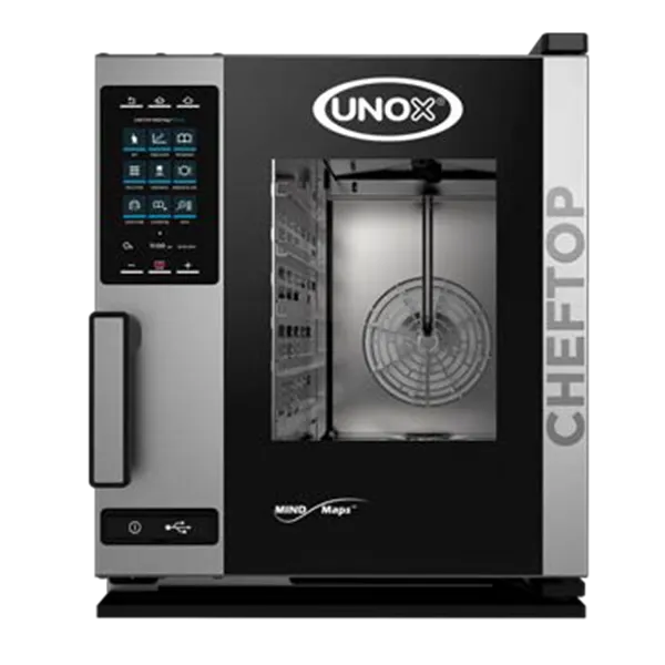 Introducing the Unox XACC-0513-EPLM Combi Oven, Electric - the perfect addition to drive restaurant profitability. This compact countertop oven is designed to meet the demands of a busy commercial kitchen. With a capacity of (5) 1/1 GN or (5) 12"x20" hotel pans, it offers ample space to cook multiple dishes simultaneously. The MIND.Maps technology and programmable menu allow for precise control over cooking processes, ensuring consistent and delicious results every time. The 2-5/8" shelf spacing accommodates various food sizes, while the glass door and left-to-right door opening provide easy access and visibility. Made with a stainless steel interior and exterior, this oven is not only durable but also easy to clean. With its 5.8-7.7 kW power, NSF and cMETus certifications, and ENERGY STAR rating, the Unox XACC-0513-EPLM Combi Oven is a reliable and energy-efficient choice for any commercial restaurant.