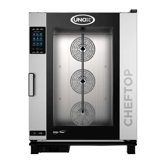 Streamline your restaurant cooking operations with the Unox XAVC-10FS-EPLM Combi Oven. This electric oven is designed to meet the demands of a busy commercial kitchen, offering a capacity of (10) 18" x 26" full-size sheets or (20) hotel size pans. With its MIND.Maps technology and programmable menu, you can easily create and save cooking programs for consistent results every time. The 3-3/16" shelf spacing allows for efficient use of space, while the glass door and left-to-right door opening provide easy access to your dishes. Made with a stainless steel interior and exterior, this oven is durable and easy to clean. It operates at a power range of 21.6-28.7 kW and is NSF, cMETus, and ENERGY STAR certified. Upgrade your kitchen with the Unox XAVC-10FS-EPLM Combi Oven and experience enhanced efficiency and versatility in your cooking processes.