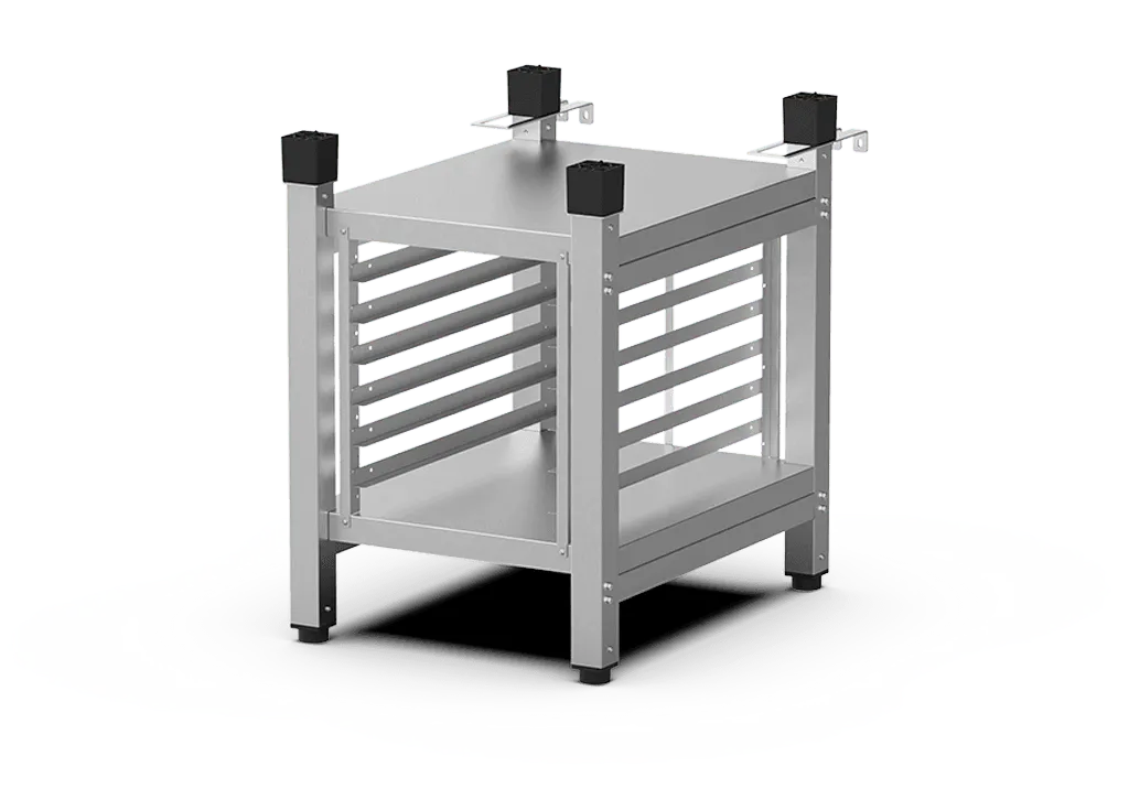 The Unox High Open Stand boasts a 2-23/64" (60mm) pitch, offering the perfect spacing for efficient and organized kitchen workflows. Its dimensions, (WxDxH) 20 3/8" x 30 11/16" x 29 5/16", make it a mandatory addition for positioning the EVEREO on the floor, ensuring stability and accessibility during peak service times.