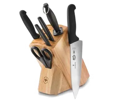 Upgrade Your Culinary Tool with the Victorinox Swiss Army, 5.1193.7-X2 Knife Set. This 7-piece set is a must-have for any commercial restaurant. Crafted by Victorinox Swiss Army, a trusted name in cutlery, this set is designed to enhance your culinary experience. The set includes a hardwood block with a sleek black fibrox handle, providing both style and durability. Each knife is expertly crafted to deliver precision and efficiency in the kitchen. From slicing and dicing to chopping and mincing, these knives are versatile and reliable. Whether you're a professional chef or a passionate home cook, this knife set will elevate your cooking skills and make your restaurant operations more efficient. Upgrade your culinary arsenal with the Victorinox Swiss Army, 5.1193.7-X2 Knife Set and experience the difference in your kitchen.