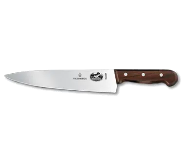Elevate Your Restaurant's Efficiency with the Victorinox Swiss Army, 5.2000.25, Chef Knife. This high-quality knife is a must-have for any commercial kitchen. With its 10" blade and 2-1/4" width at the handle, it offers exceptional precision and control, allowing chefs to effortlessly slice, dice, and chop ingredients. The rosewood handle not only adds a touch of elegance but also provides a comfortable grip, reducing fatigue during long hours of use. Designed by Victorinox Swiss Army, a trusted name in cutlery, this knife is built to withstand the demands of a busy restaurant environment. Whether you're preparing delicate fish fillets or tackling tough cuts of meat, this chef knife will deliver consistent results every time. Invest in the Victorinox Swiss Army, 5.2000.25, Chef Knife and experience the difference it can make in your kitchen.