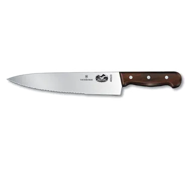 Transform Your Kitchen Workflow with the Victorinox Swiss Army, 5.2030.25-X1, Chef Knife. This high-quality knife is a must-have for any commercial restaurant. With its 10" sandwich knife and 2-1/4" width at the handle, it offers exceptional precision and control, allowing chefs to effortlessly slice through meats, vegetables, and more. The wavy/straight edge provides versatility, making it suitable for a wide range of cutting tasks. The rosewood handle not only adds a touch of elegance but also ensures a comfortable grip, reducing fatigue during long hours in the kitchen. Packaged in a convenient clamshell/peggable package, this knife is ready to use right out of the box. Whether you're a professional chef or a culinary enthusiast, the Victorinox Swiss Army Chef Knife is a reliable and durable tool that will enhance your culinary skills and streamline your kitchen operations.